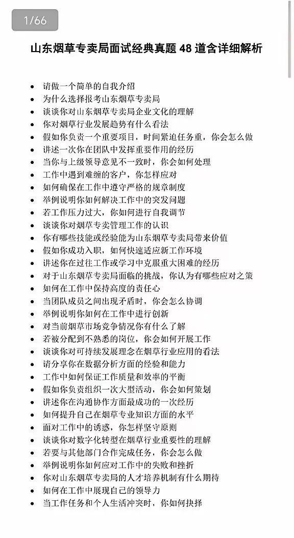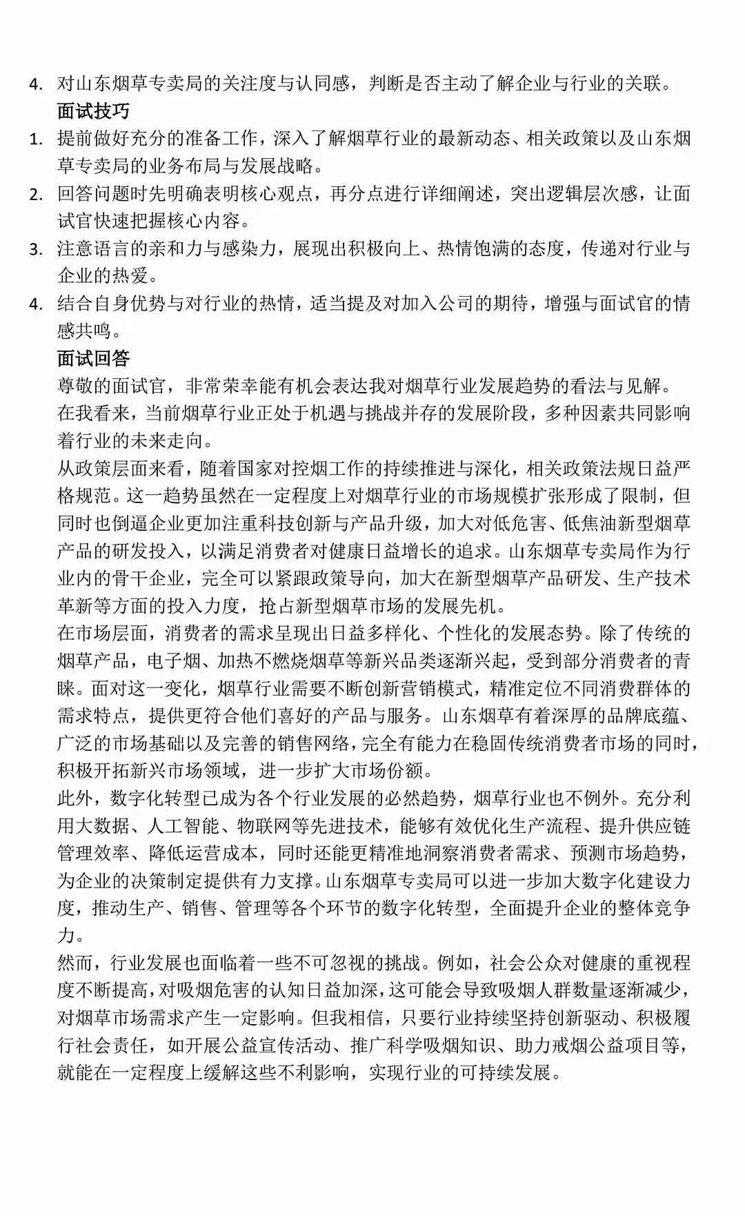 山东烟草面试真题带解析答案,烟草面试真题及答题思维,对我们应对其他招聘的面试也有积极的借鉴意义,希望同学们能举一反三,从中感悟出各种招聘面试真谛!