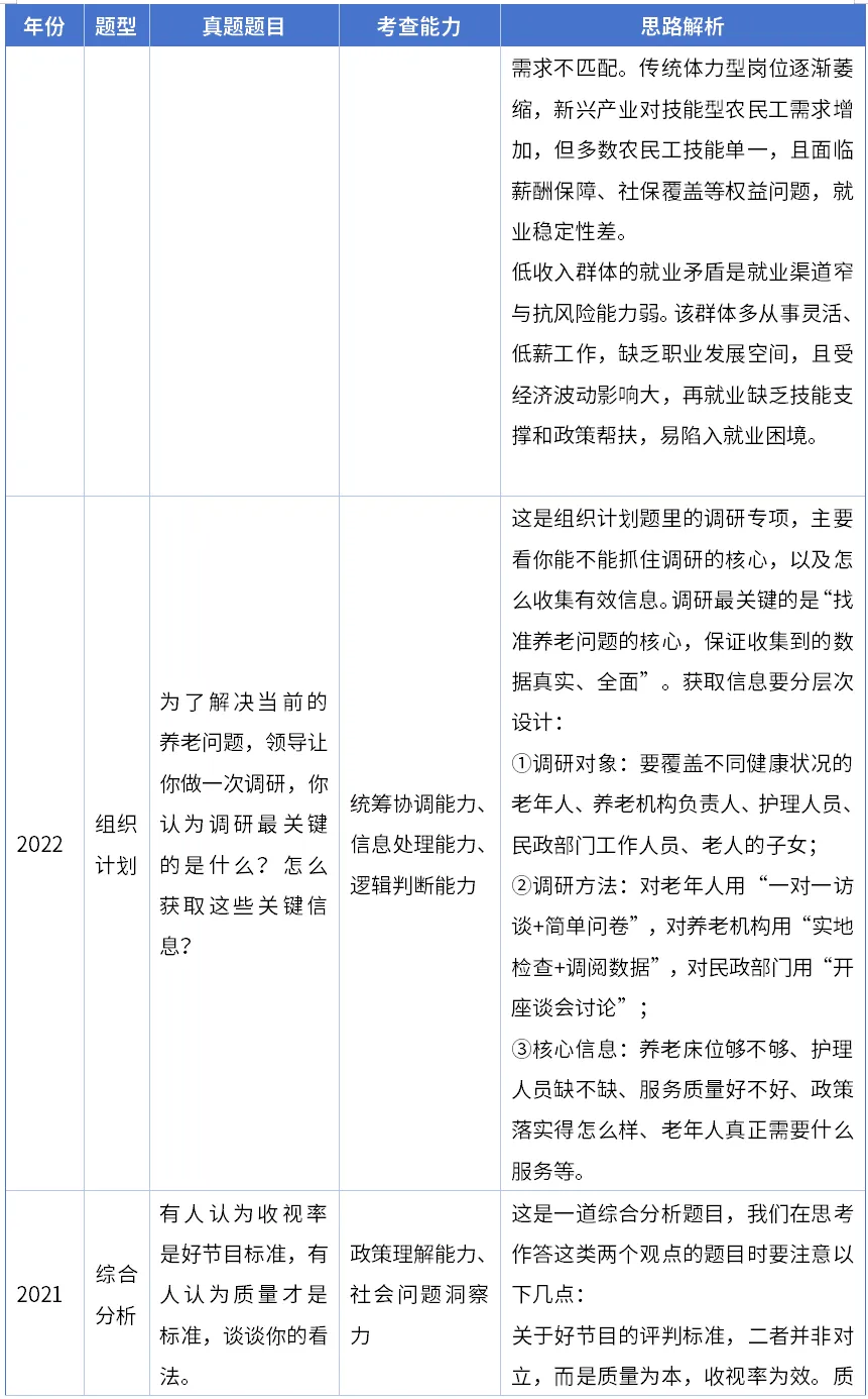 注:这份图表数据是根据全国统计局系统的面试真题统计的,核心结论很明确:综合分析题(包括数据分析)是必考的,每套题都有1-2道;组织计划、情景模拟题考得也多,是高频考点;统筹排序题虽然考得少,但必须重点关注哦。