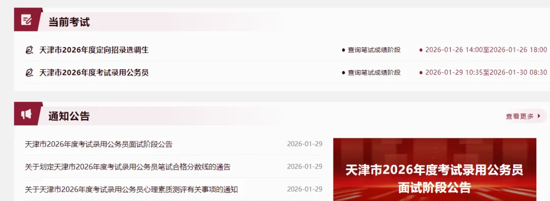 成绩查询:https://gklx.hrss.tj.gov.cn/#/index来源:天津市公务员考试录用服务平台