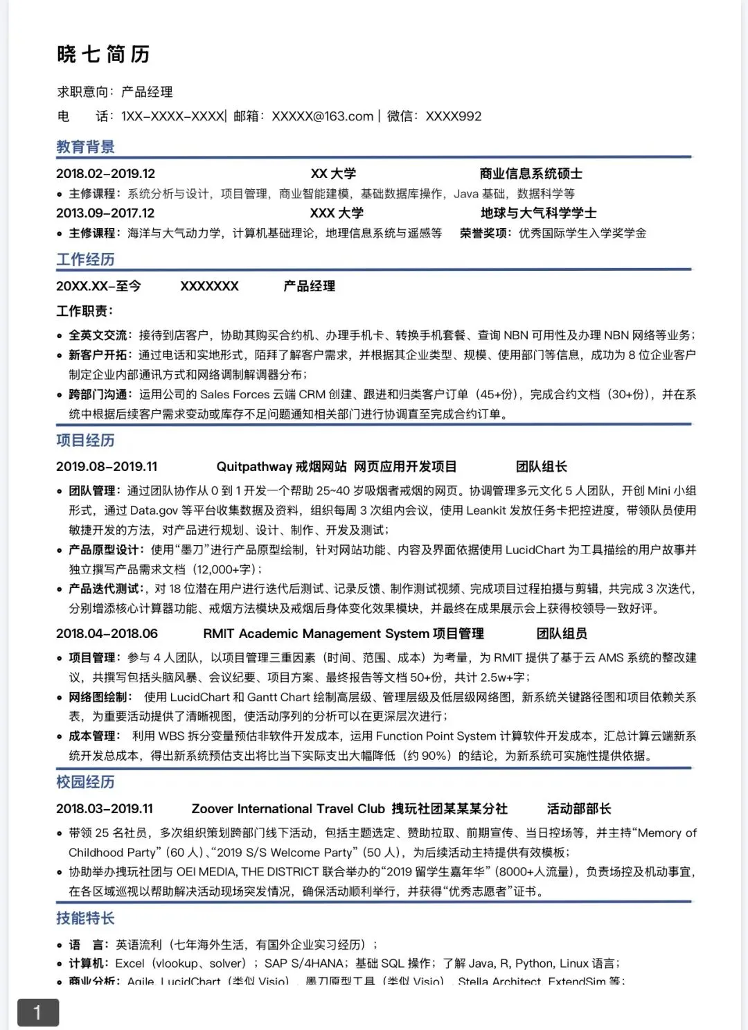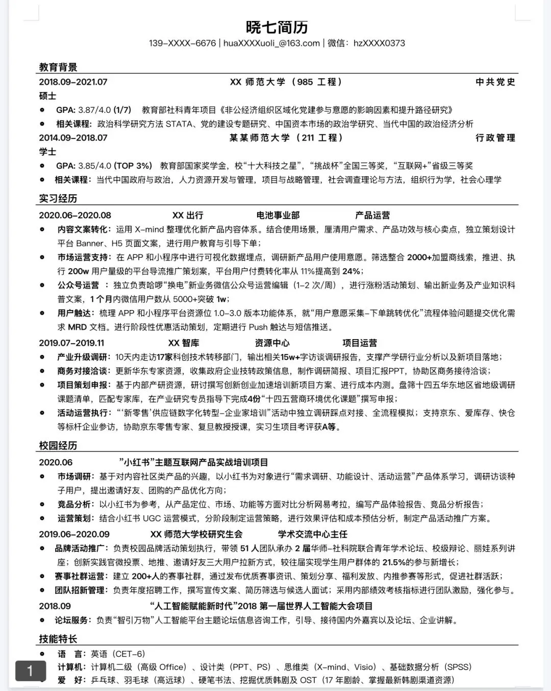 本文分享的是【原创大厂校招社高质简历模板】