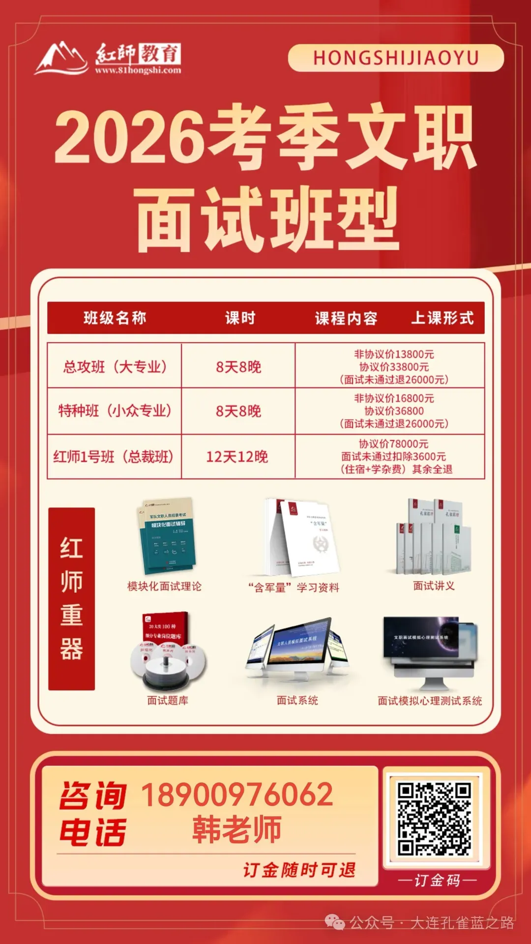 ✅如没有入围面试,其他原因不去上课,订金全额退款,三天内到帳。