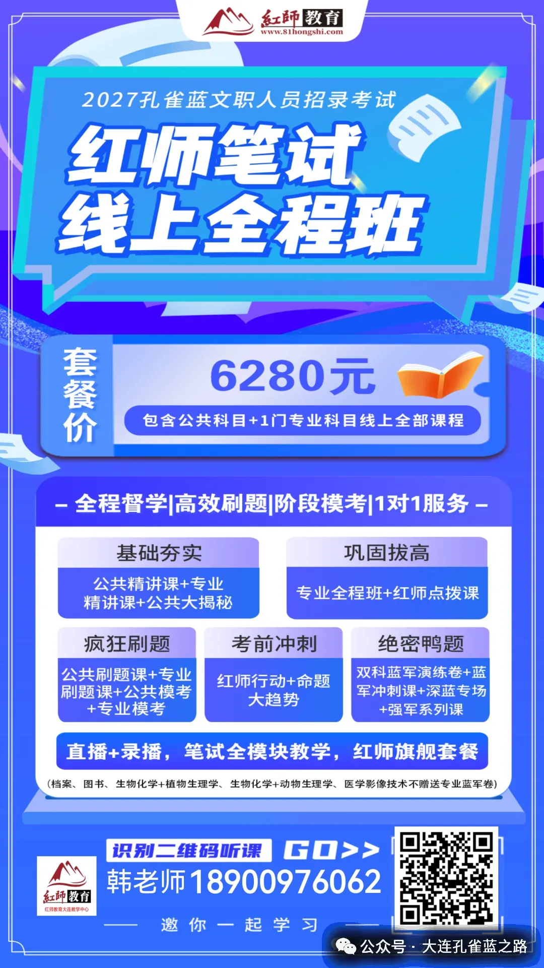 2027年红师笔试线上全程课已上架,价格6280元,使用期限一年,课程会分阶段上架,内容包括: