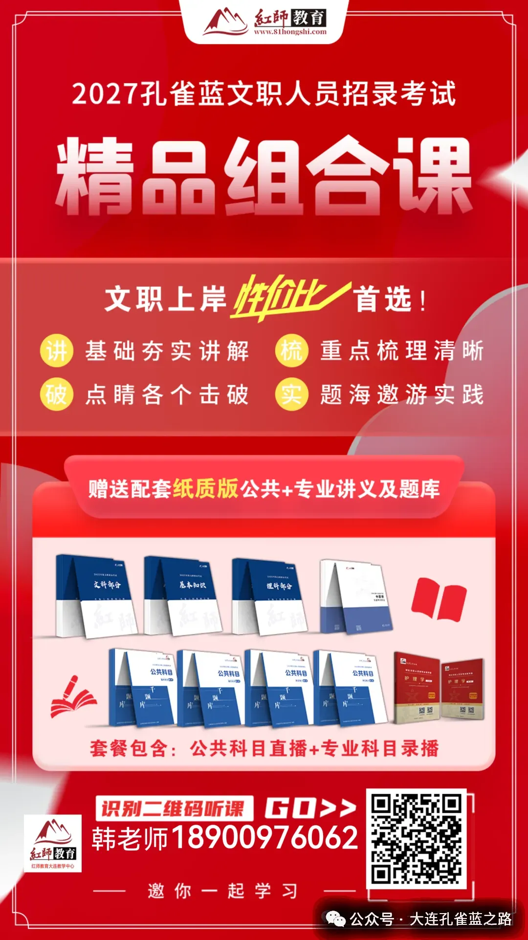 红师教育专注于文职培训8年,承训了大量笔试和面试的学员。备考遇到任何问题可以联系红师教育大连教学中心韩老师。每年所带学员都有上岸,为您1对1免费解答!