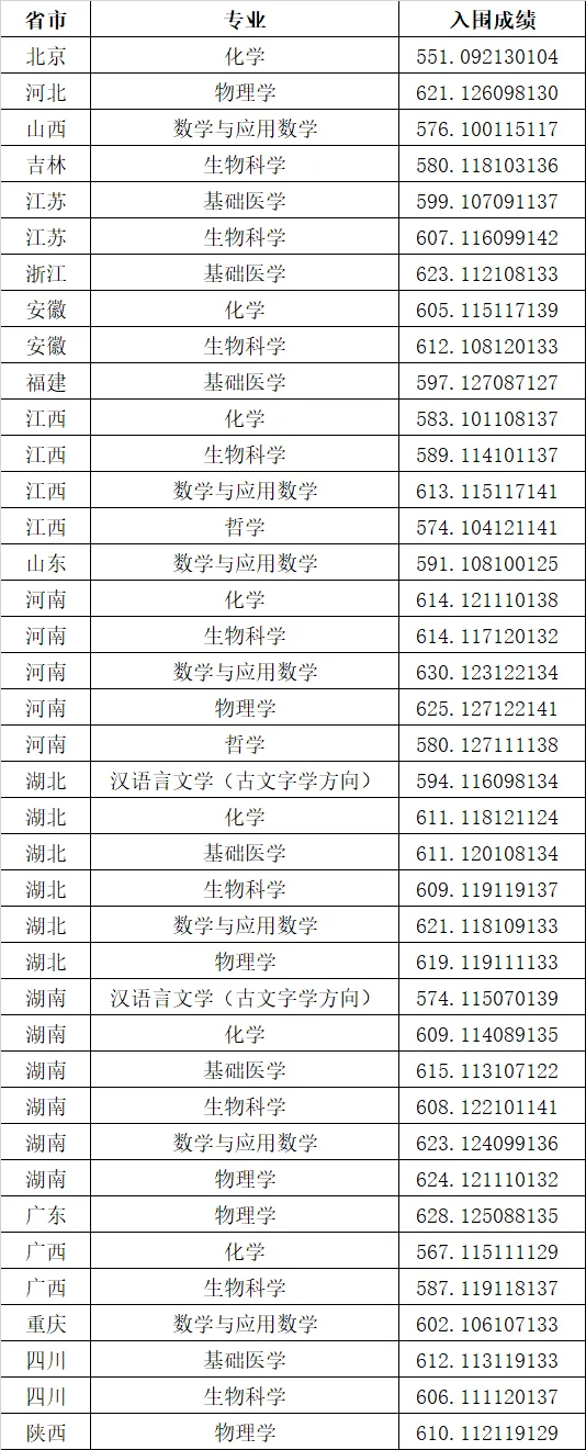 汉语言文学(古文字学方向):以传统小学为根基,覆盖古典语文、文献、文学等方向,强化数字人文素养与科研能力,培养能引领古文字学研究、传承中华文明的高端复合型人才。哲学:实行大师引领、一对一导师制,开设哲学经典与前沿主题小班研讨课,培养具备逻辑思维、批判性思维与国际视野的创新型人才,契合国家哲学社会科学发展战略需求。二、往年入围分数参考及录取规则