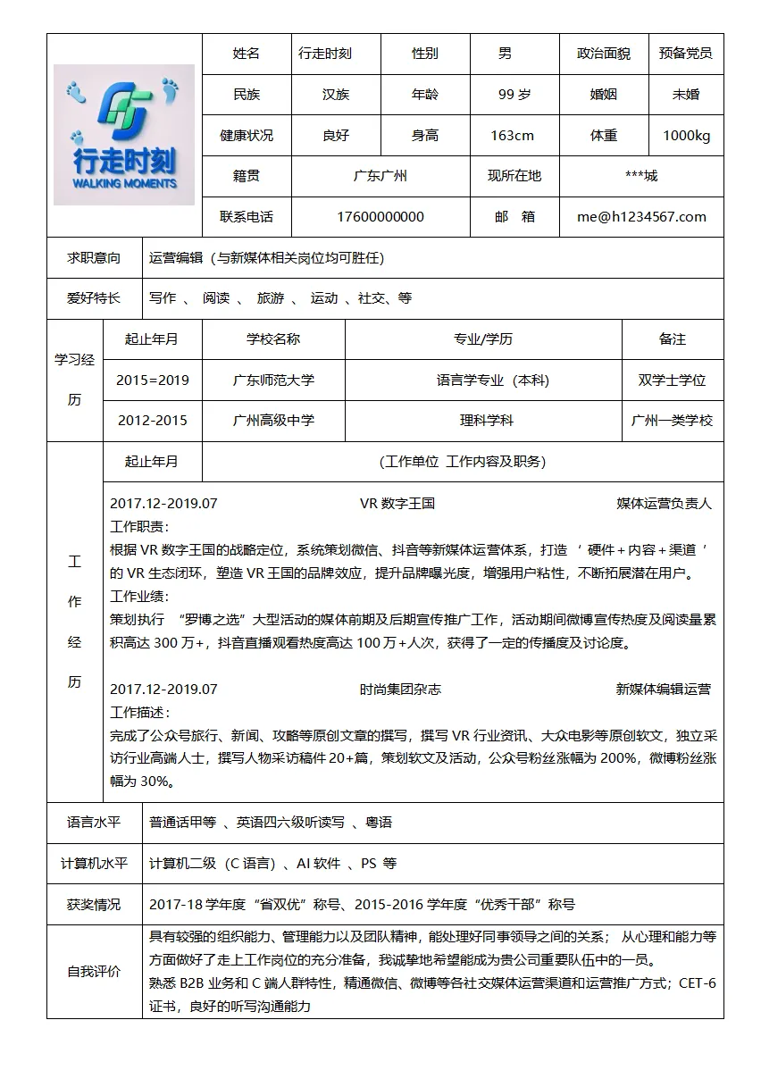- 干净整洁原则:使用简洁、专业的模板,避免花哨的颜色和字体。重点突出,排版清晰。