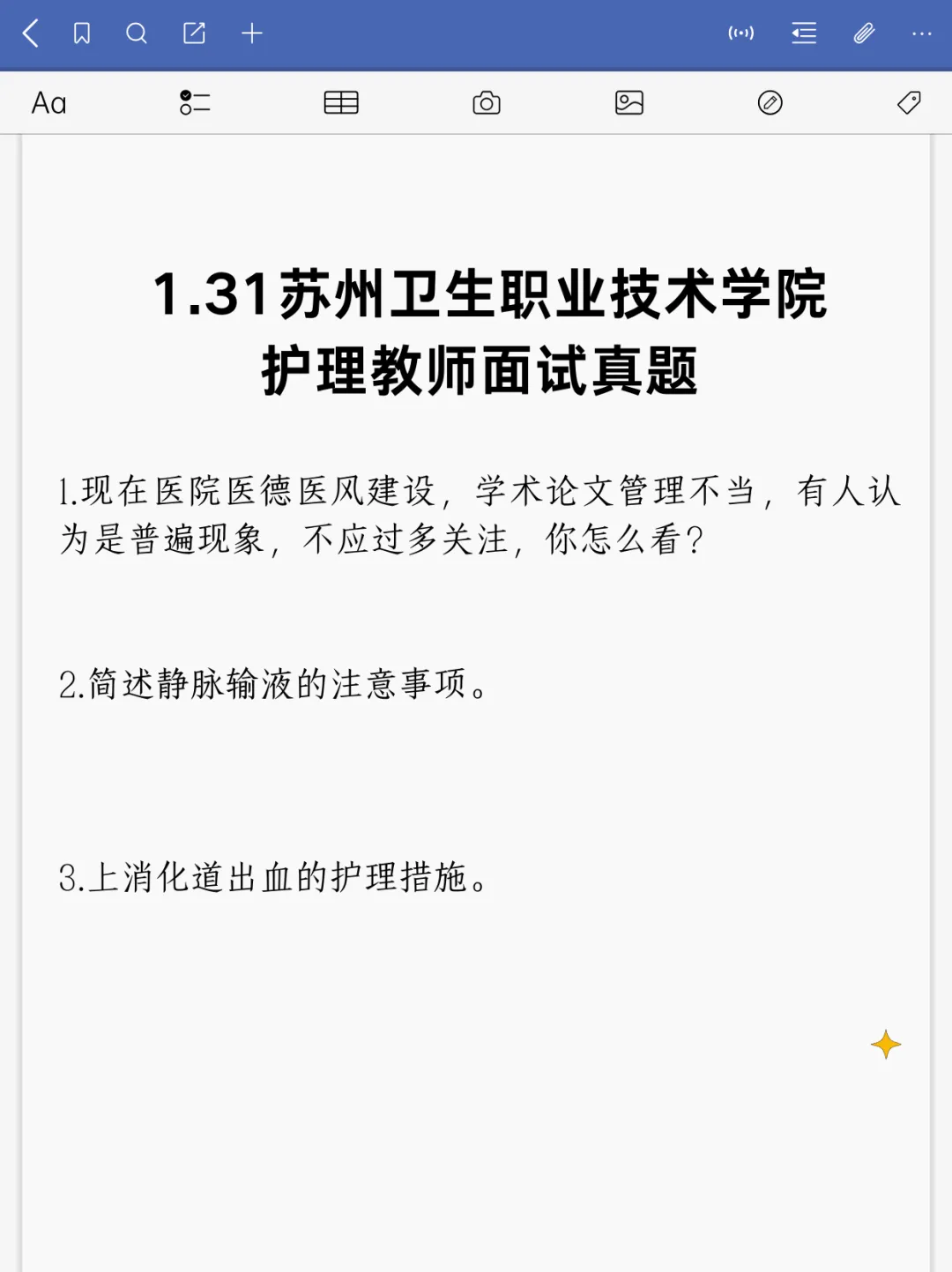 >【真题分享】苏州卫生职业技术学院护理教师面试真题2026年1月31日(考生回忆版)