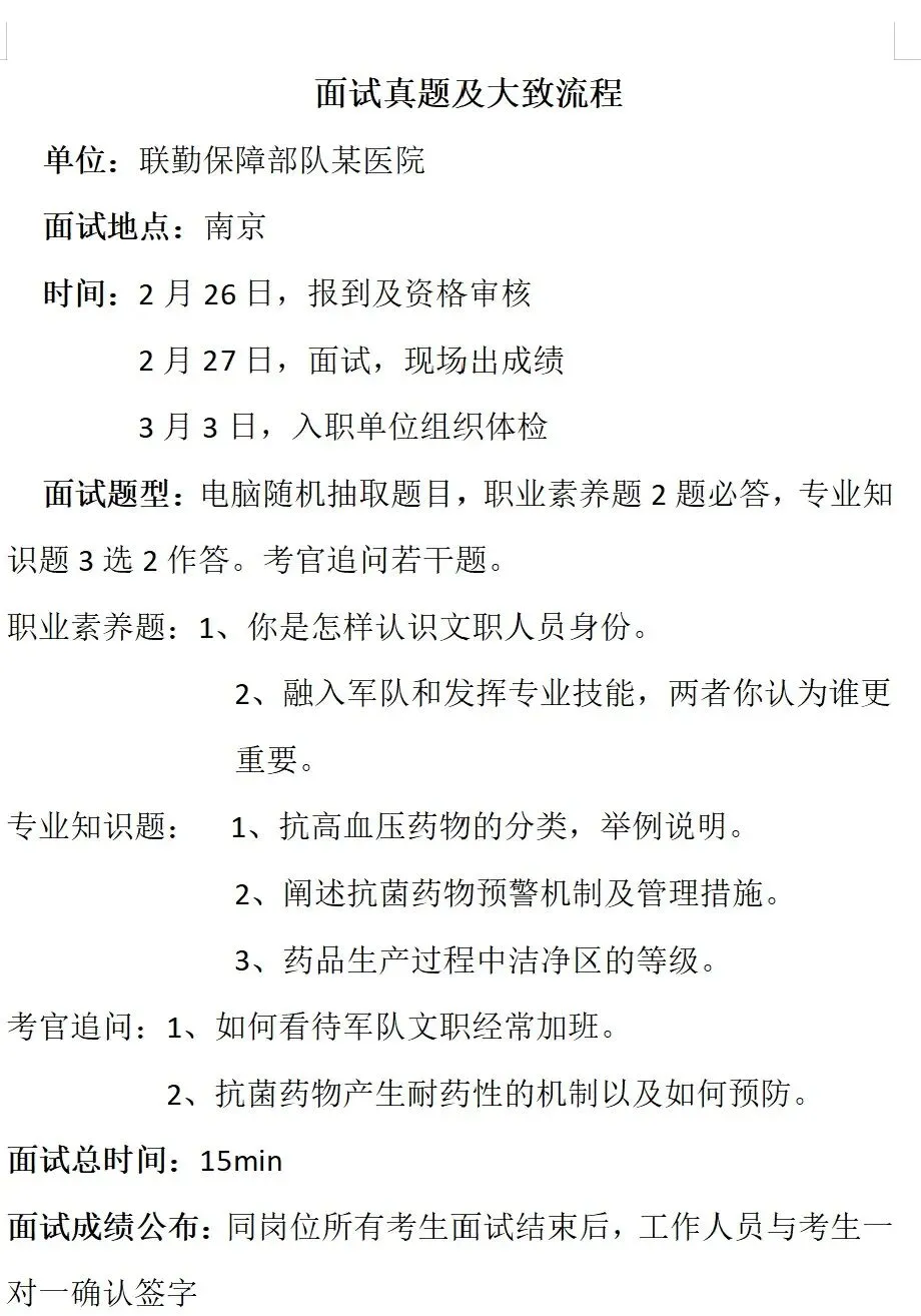 >2025年3月文职药学面试真题回忆