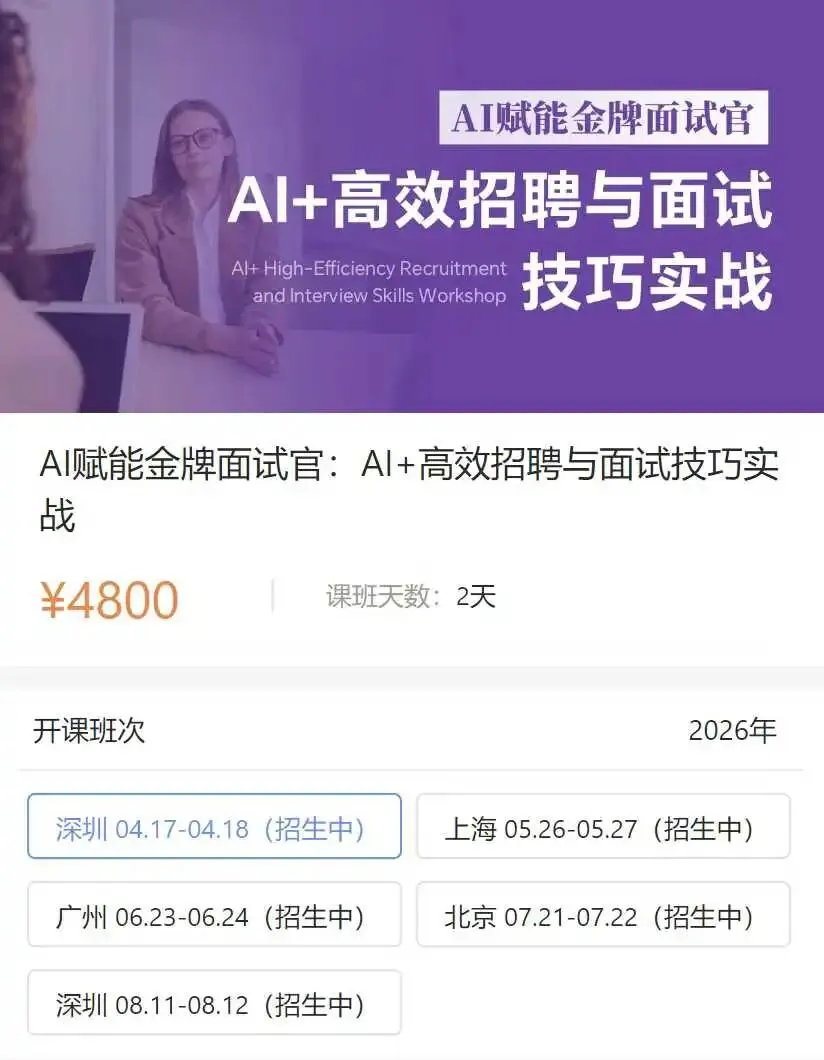 我们联合专业讲师,打造了【金牌面试官:高效招聘与面试技巧】线下课。