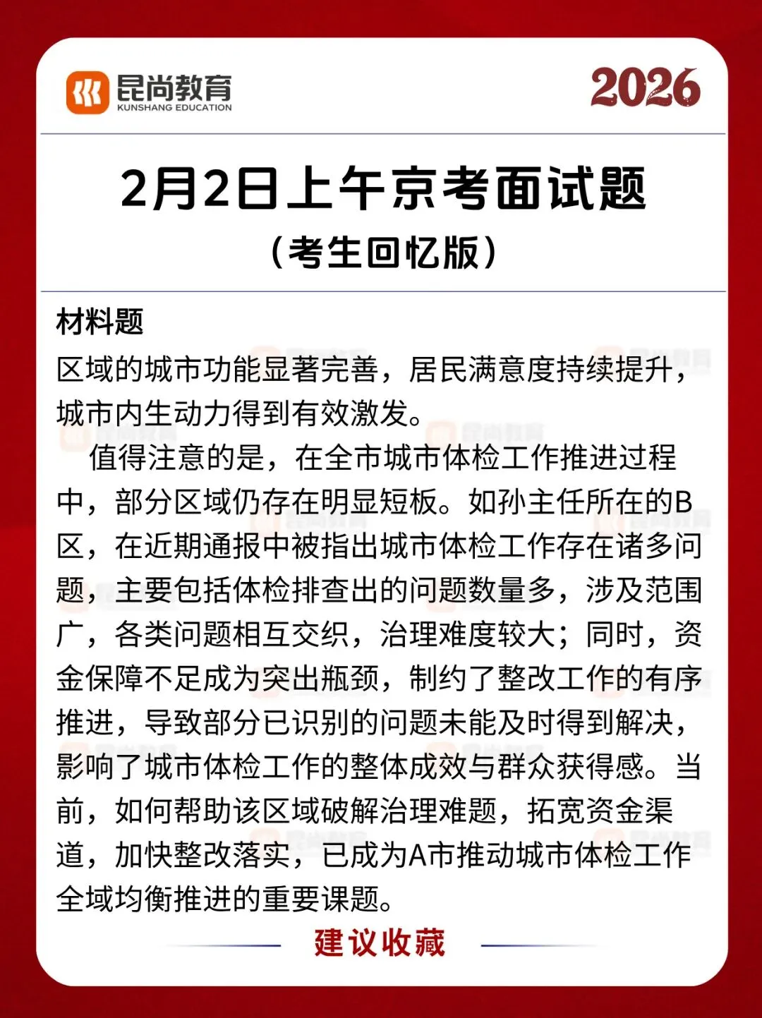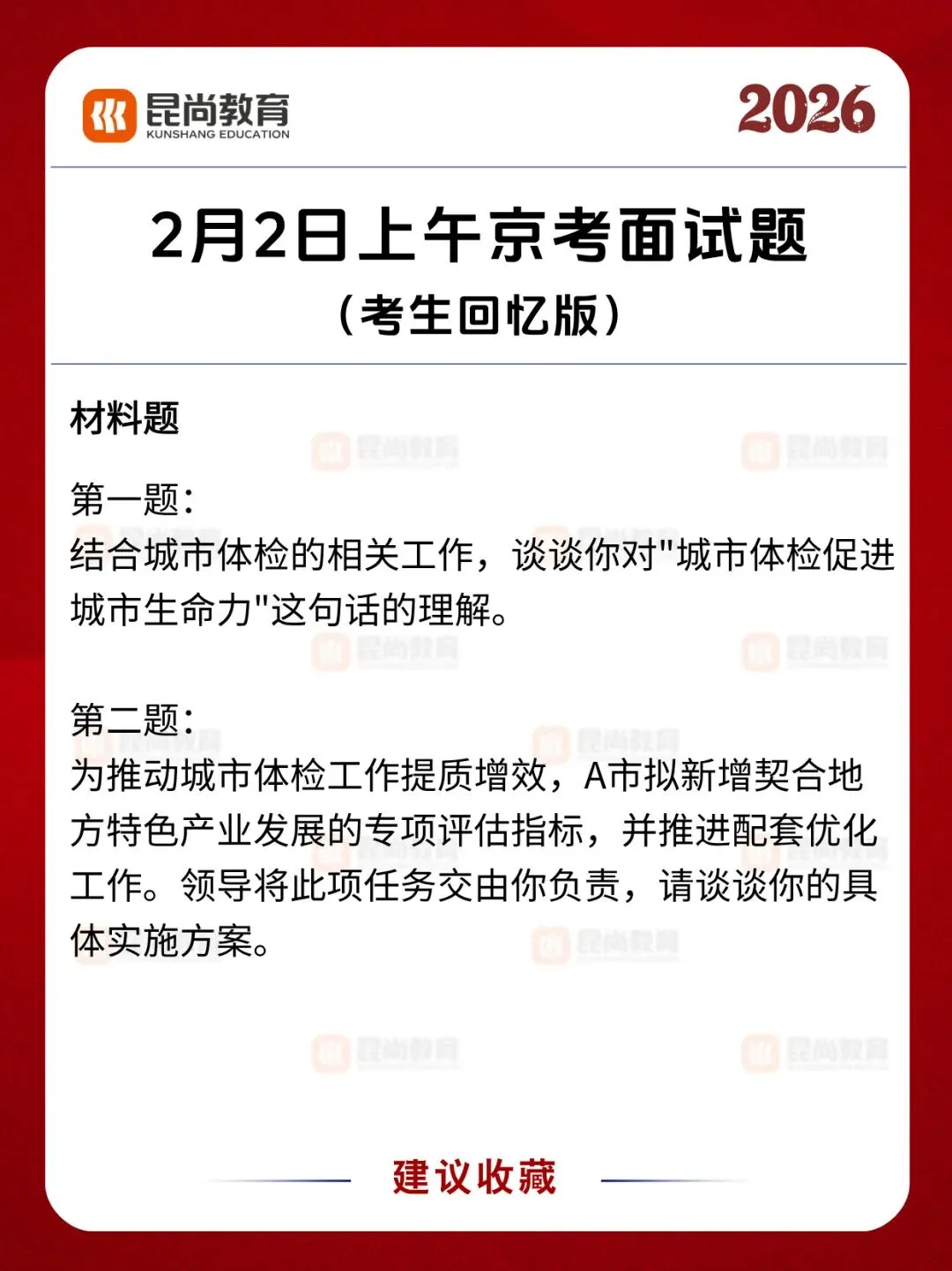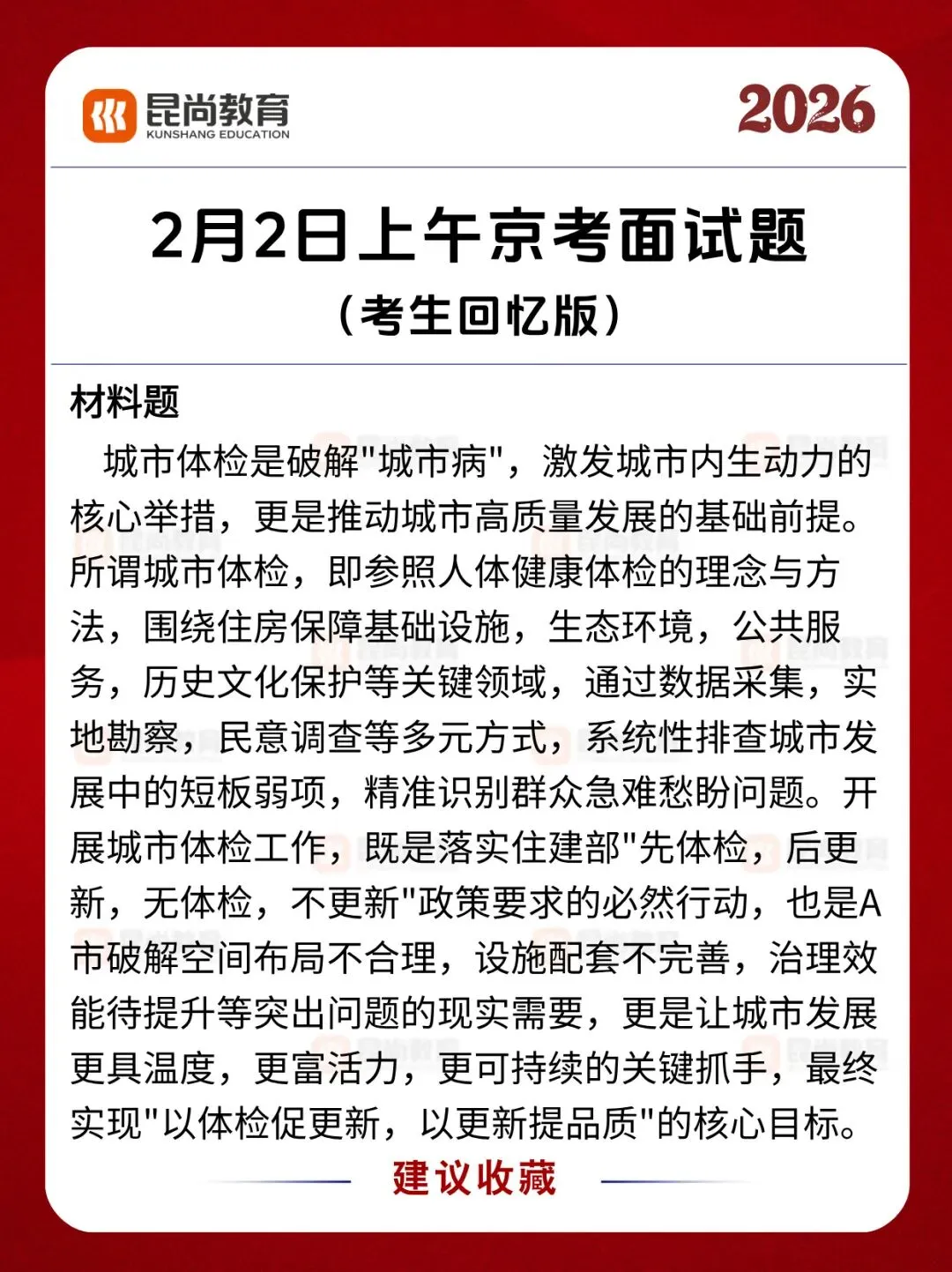 2026 北京市考面试真题(回忆版)| 2月1日考生回忆
