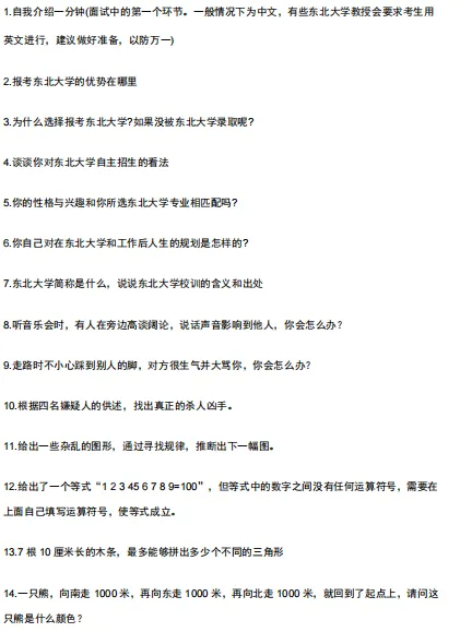 东北大学强基面试往年试题:(以下来自于考生分享)