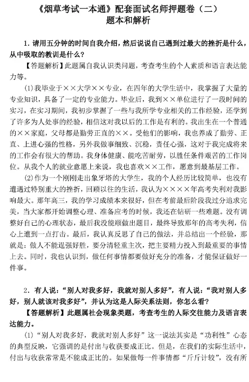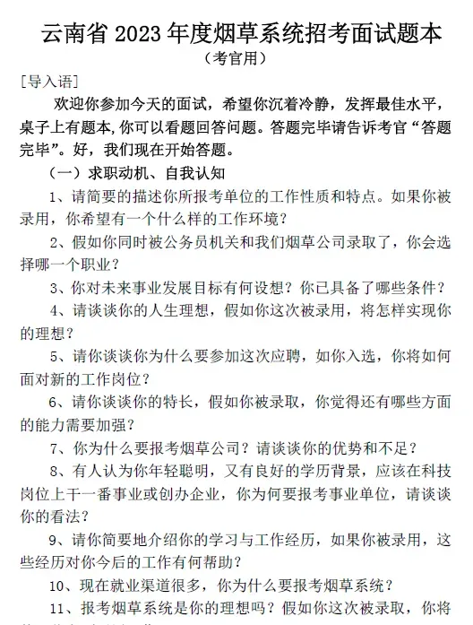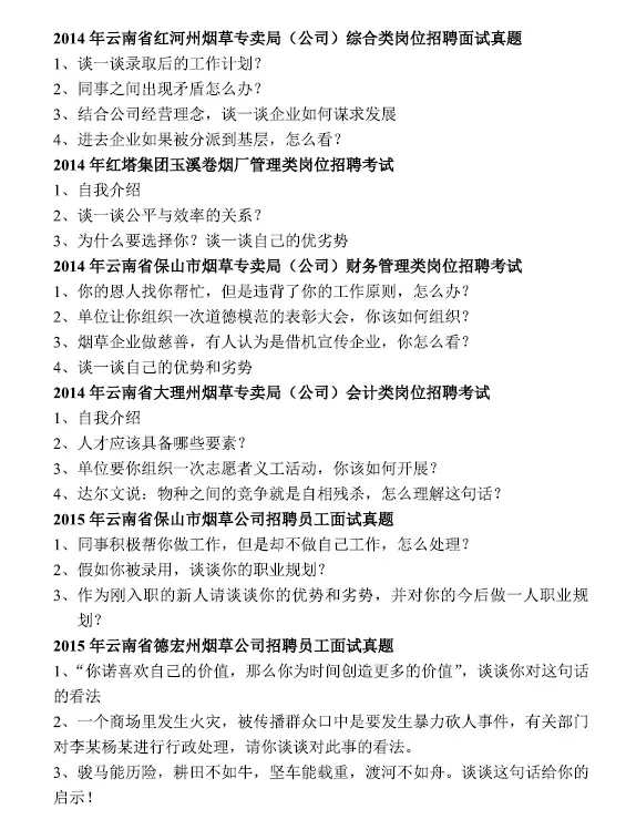添加客服微信meirijingji365,索取云南烟草专卖局面试往年真题