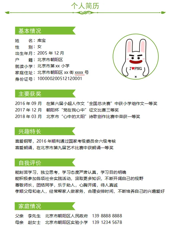 上海小升初择校简历不用愁!10套可编辑模板直接用