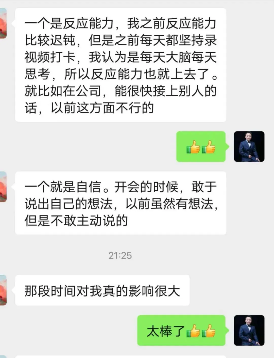 哪怕你就是在演,你的大脑反过来会告诉你:我今天很厉害,最后你就真的能演出你想要的效果。