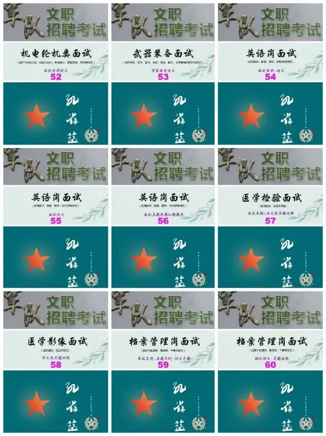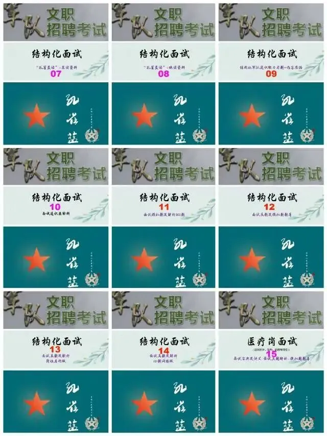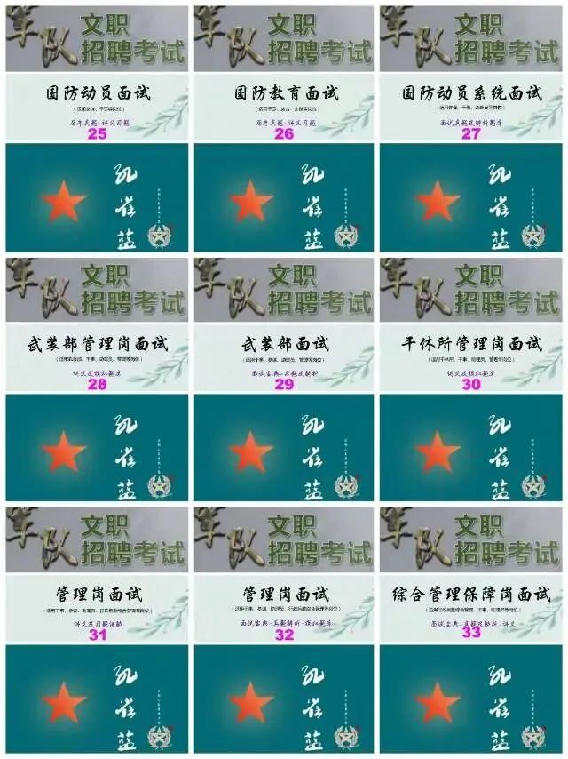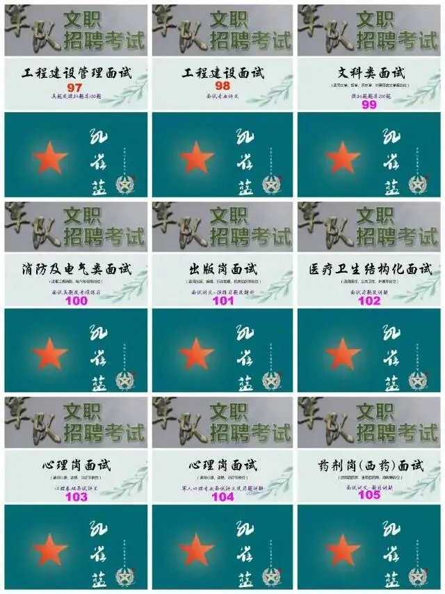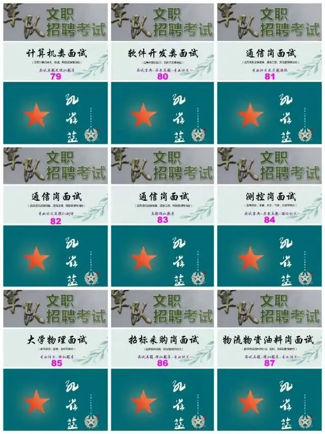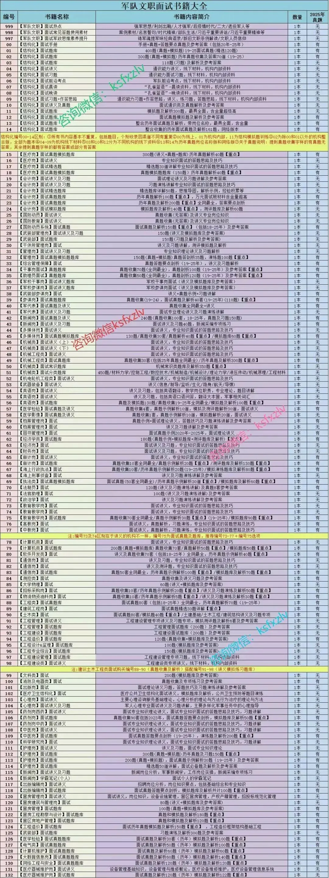 📢 很多小伙伴问我关于面试真题和习题的事,在这统一回复,表格里的书籍基本都有历年的面试真题,包括结构化和专业岗的,最久的包括2016-2025年的真题,除了真题,书籍里还有讲义和习题,需要的小伙伴私聊【军队文职面试书籍】🔒https://kdocs.cn/l/cjJYTowy92Fr