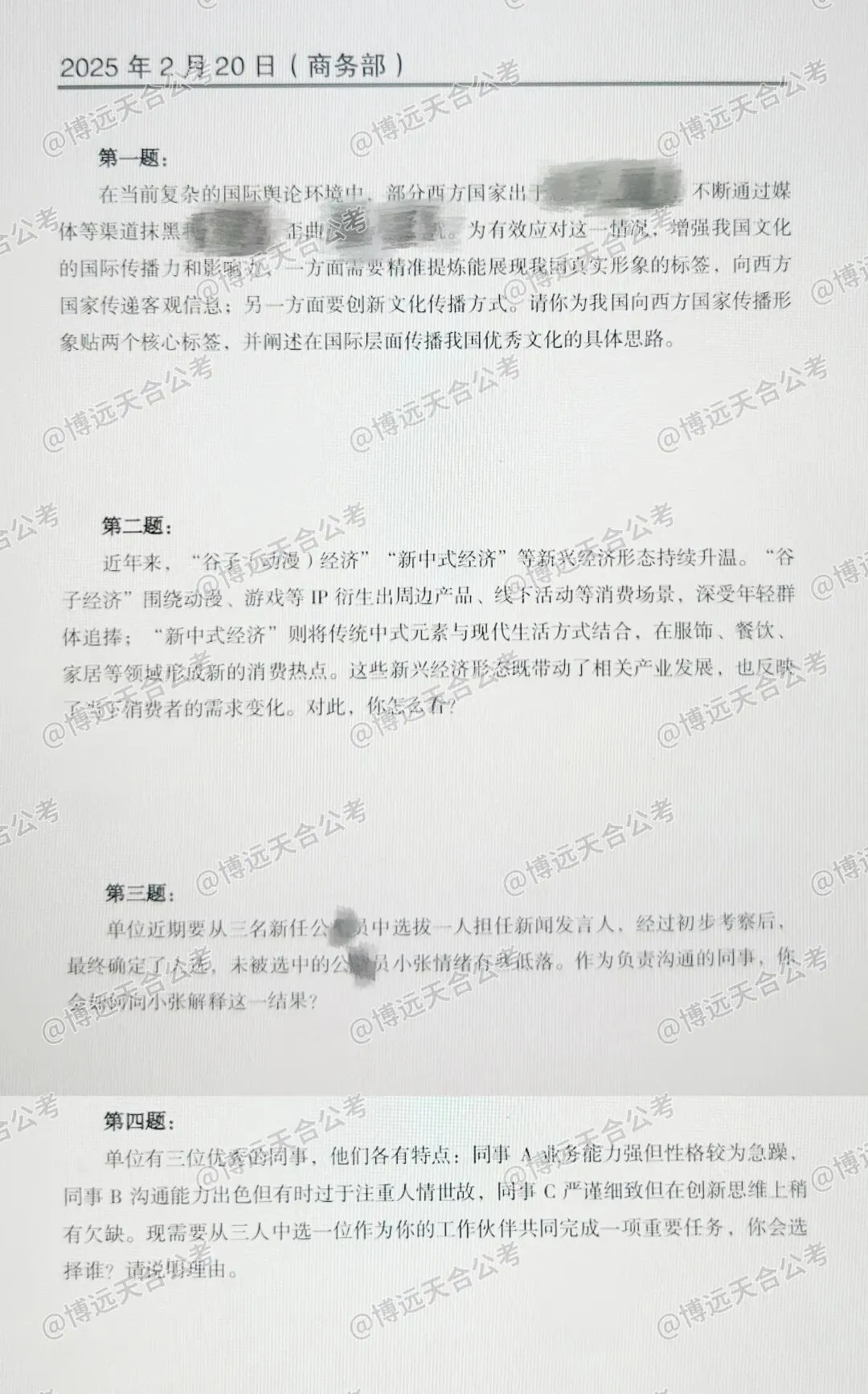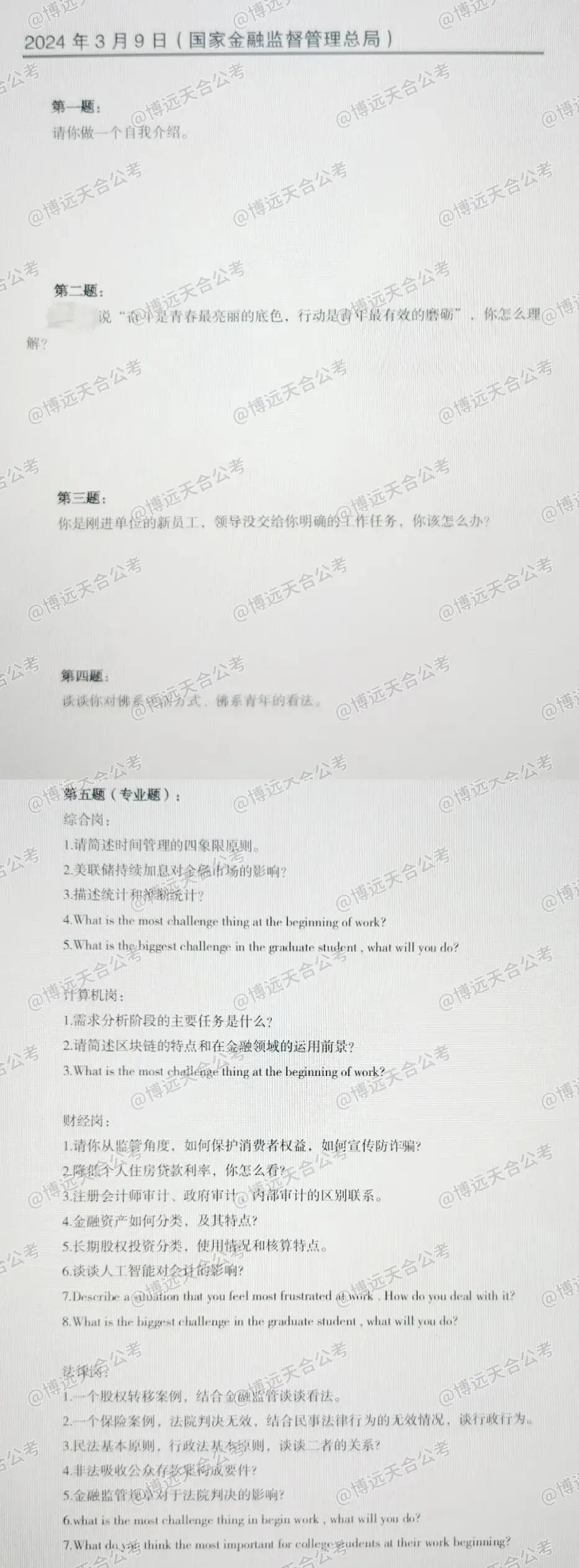面试考情:以结构化为主,全国同天同题、5题25分钟包干,重金融热点与岗位实务。看题作答,有题本与纸笔,剩余3分钟提醒。2024年前多为4题15分钟。