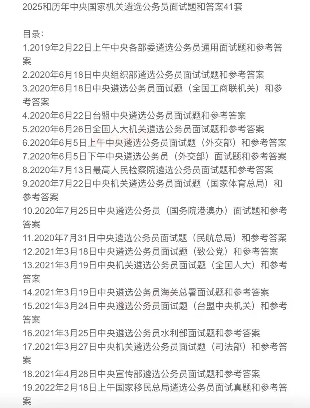 >中央国家机关遴选公务员面试历年真题附答案解析