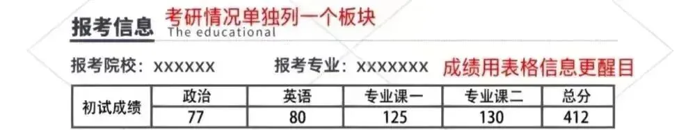 备注:成绩最好用表格的形式更加醒目,这一项也可以放到基本信息里面。