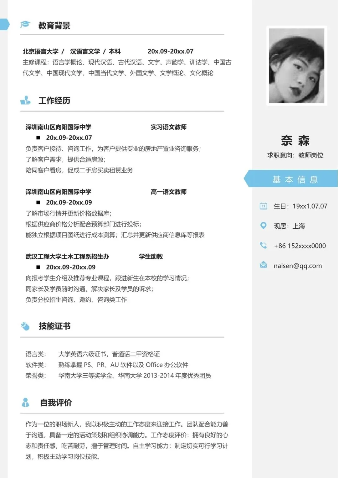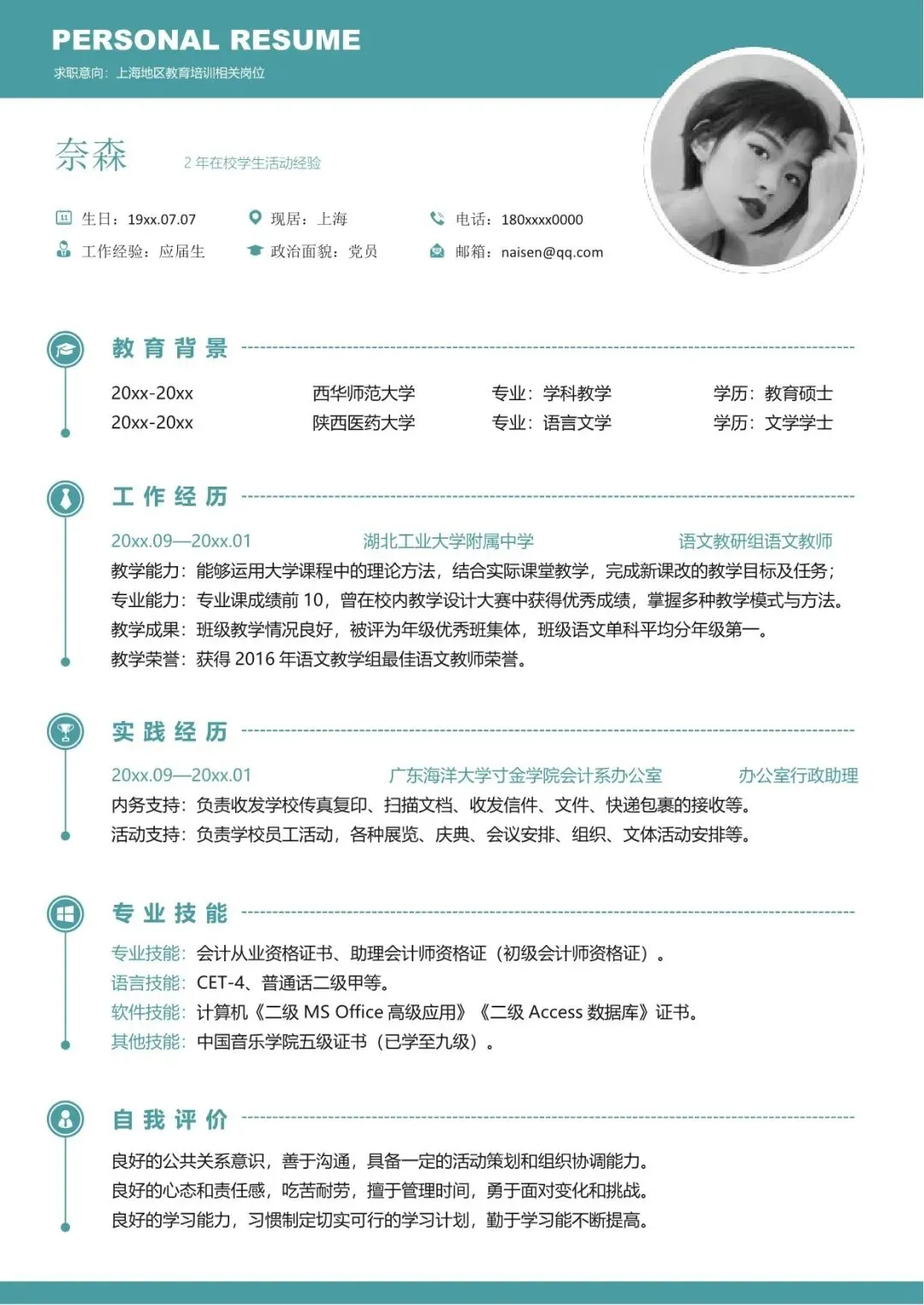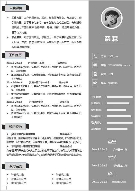 教师简历模板