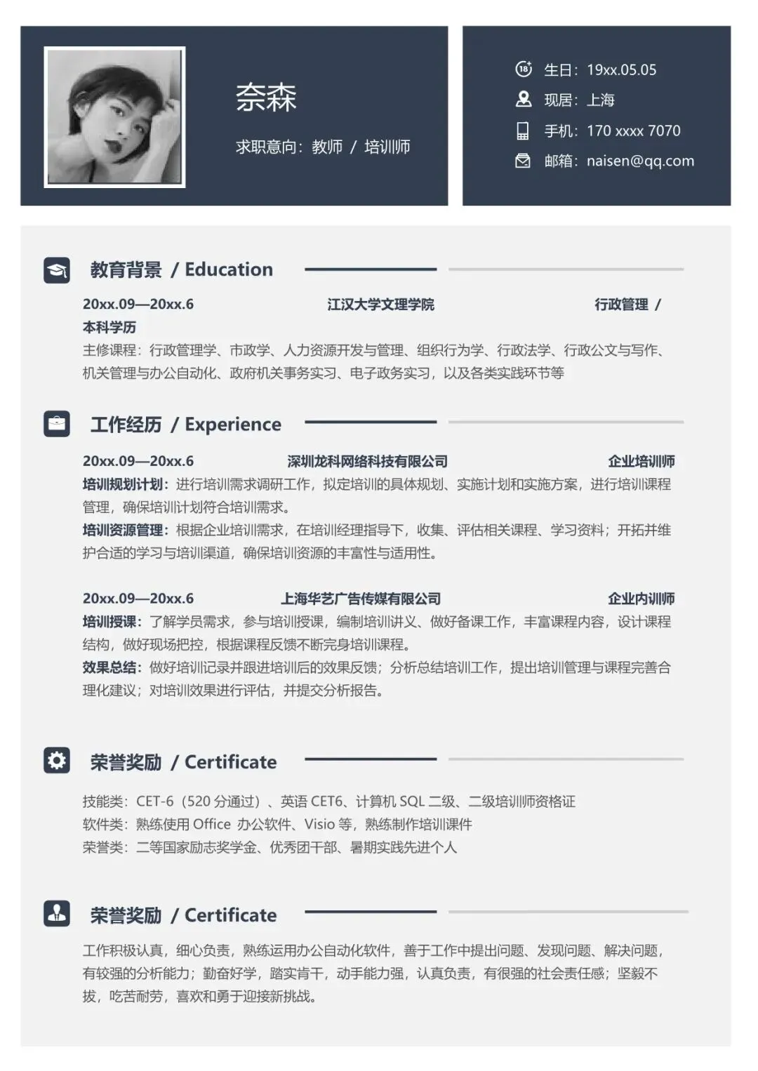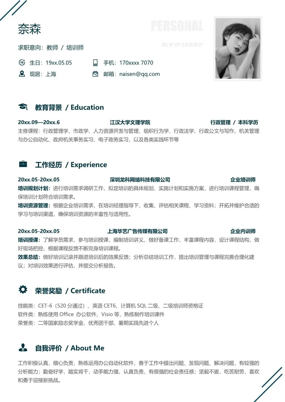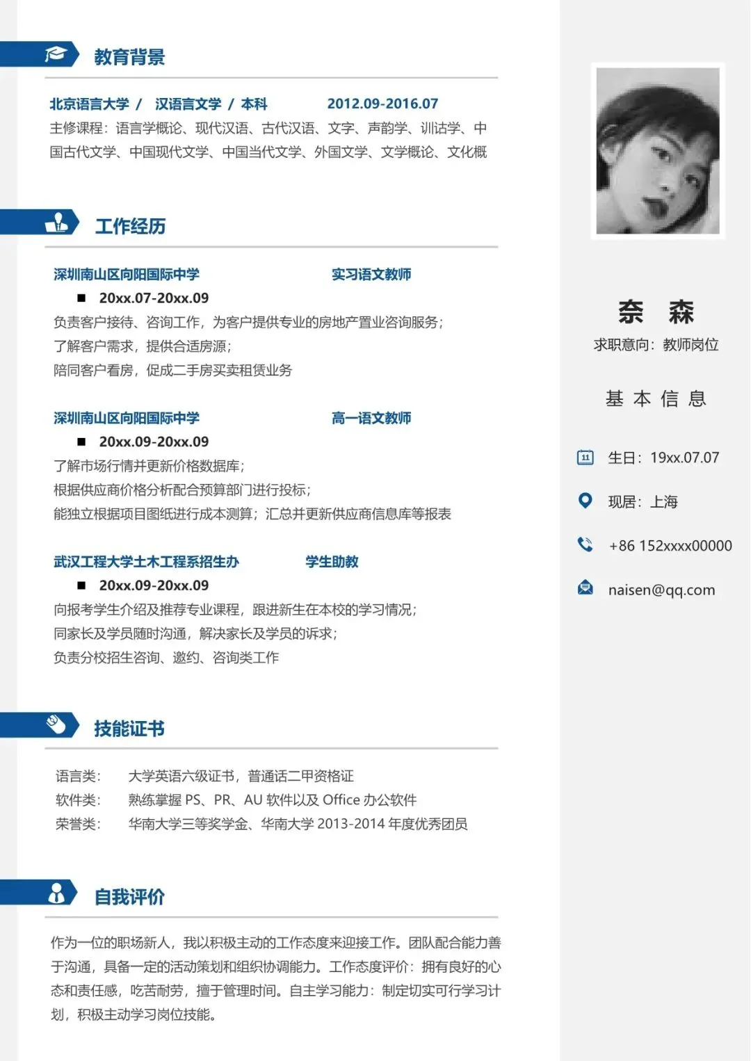 教师简历模板