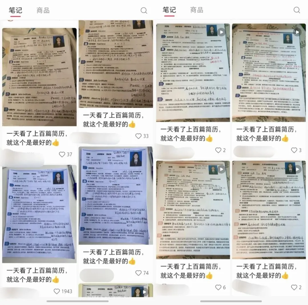我翻了他大部分的笔记,发现这个博主真是个人才,所有笔记都是一个简历模版,重复发而已,只不过是图文和视频交叉着来发罢了。