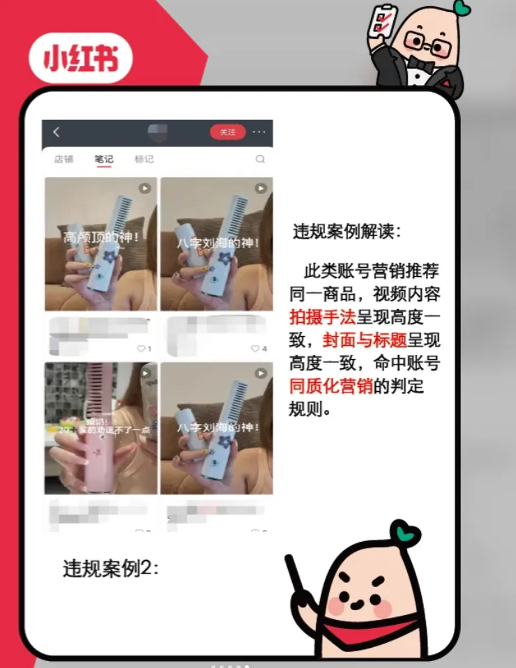 2、避免同质化营销,因为小红书平台,前期已经出了对应的通知了,明确说了不能同质化营销。