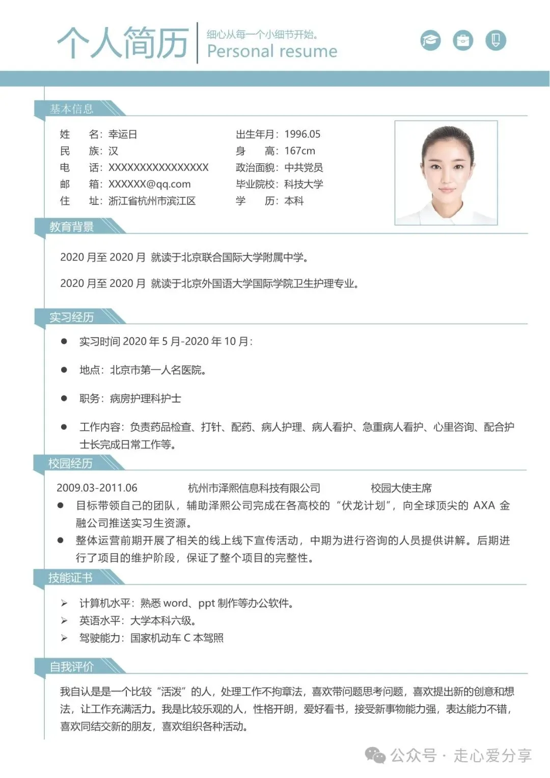 回复关键词“护士简历模板”领取完整版!