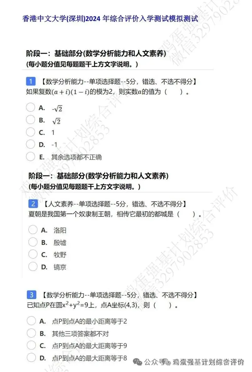 英语是核心:面试全英文,日常练口语、练辩论,积累热点话题英文表达逻辑要清晰:回答分点,先亮观点再给论据,避免泛泛而谈关注院校:熟悉港中深办学特色、学院优势、培养模式,避免答非所问机考不忽视:数学分析、中英文写作是机考重点,提前练题保持手感港中深综合测评 往年真题