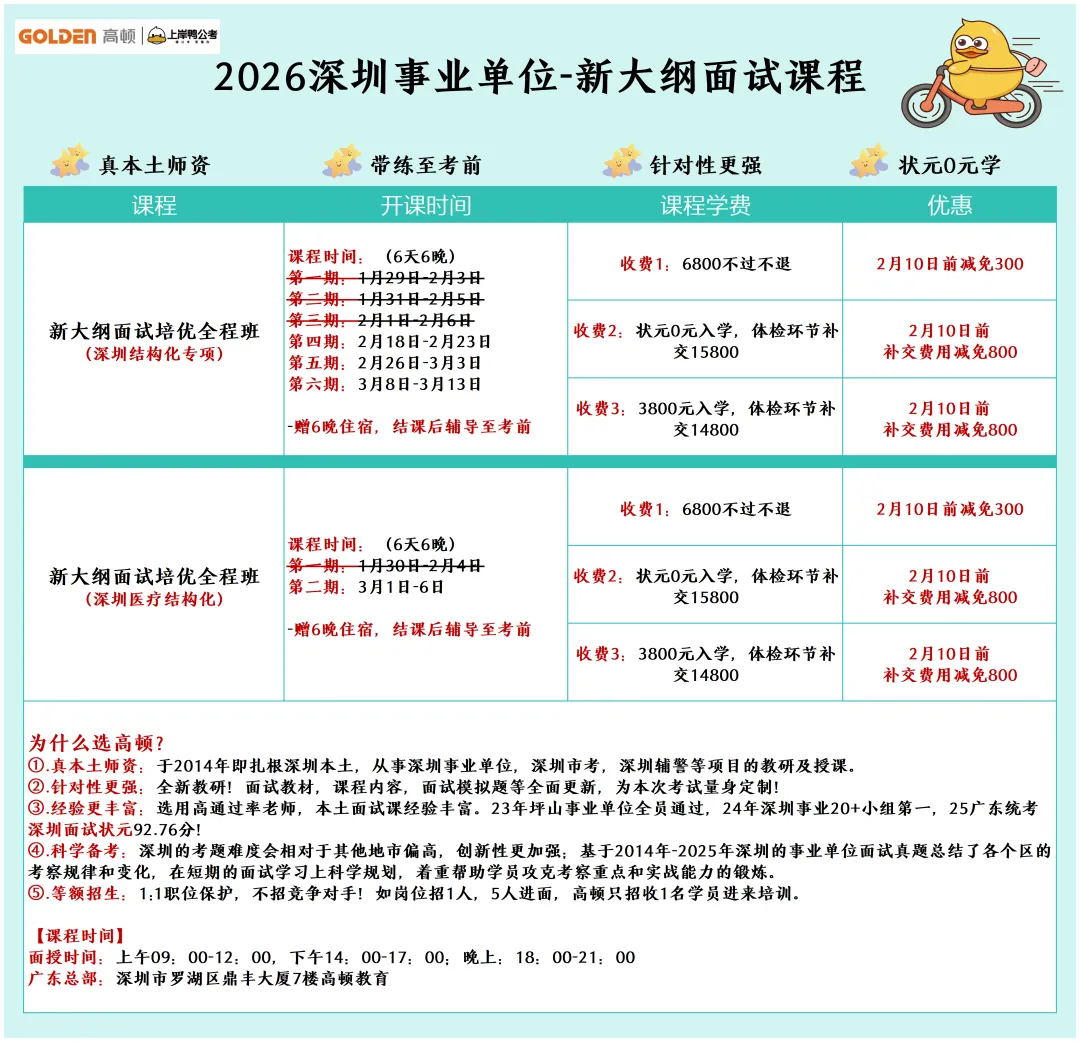 深圳事业单位面试最大的特点的是“本土化”,核心考察深圳市情、区情,同时兼顾全国热点,不同类型的题目对能力考察重点不同,精准准备才能拿高分:
