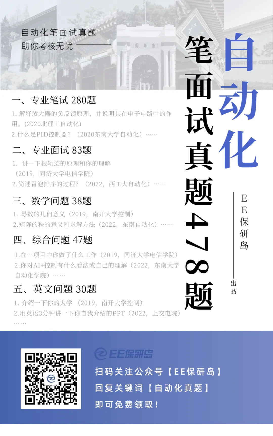 可是自动化专业知识点这么多,老师都会怎么提问?岛主搜集了各大高校自动化历年笔面试考核真题,帮助同学们掌握基础知识,发现各院校出题偏好,大大提高复习效率!