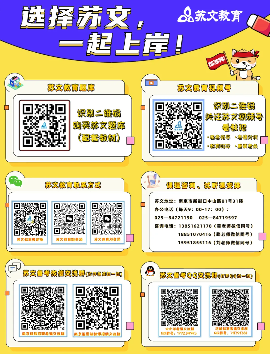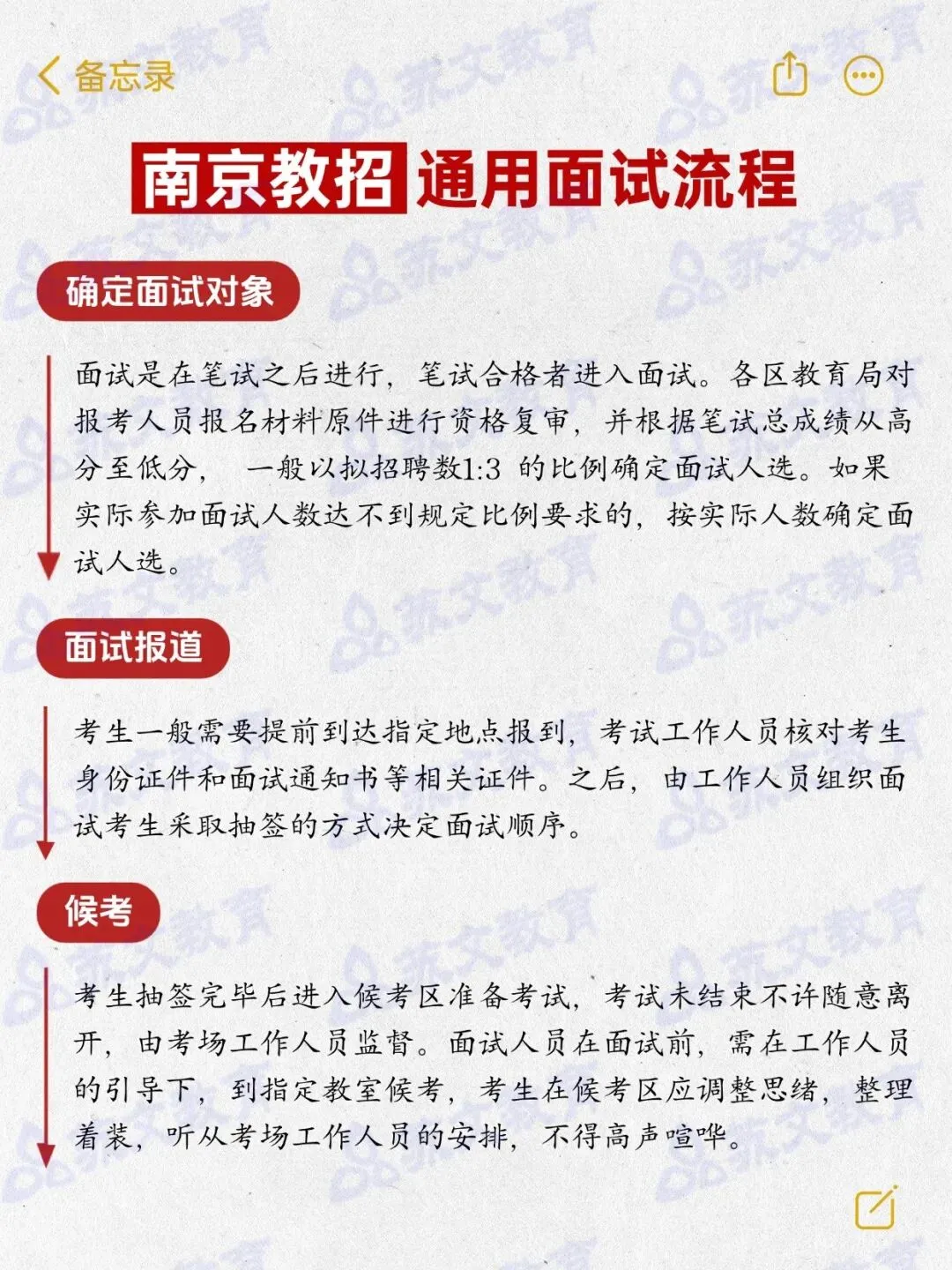 2.11笔试成绩可查!接下来,就要积极准备面试了,小苏将持续和大家分享南京各区面试考情、面试流程、面试真题,锁定“苏文考教师”,干货持续分享!