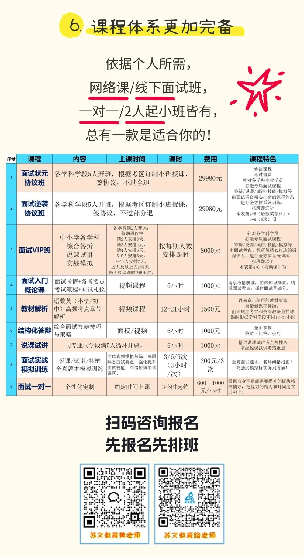✅ 目标明确:苏文多种面试课程,满足不同考生需求