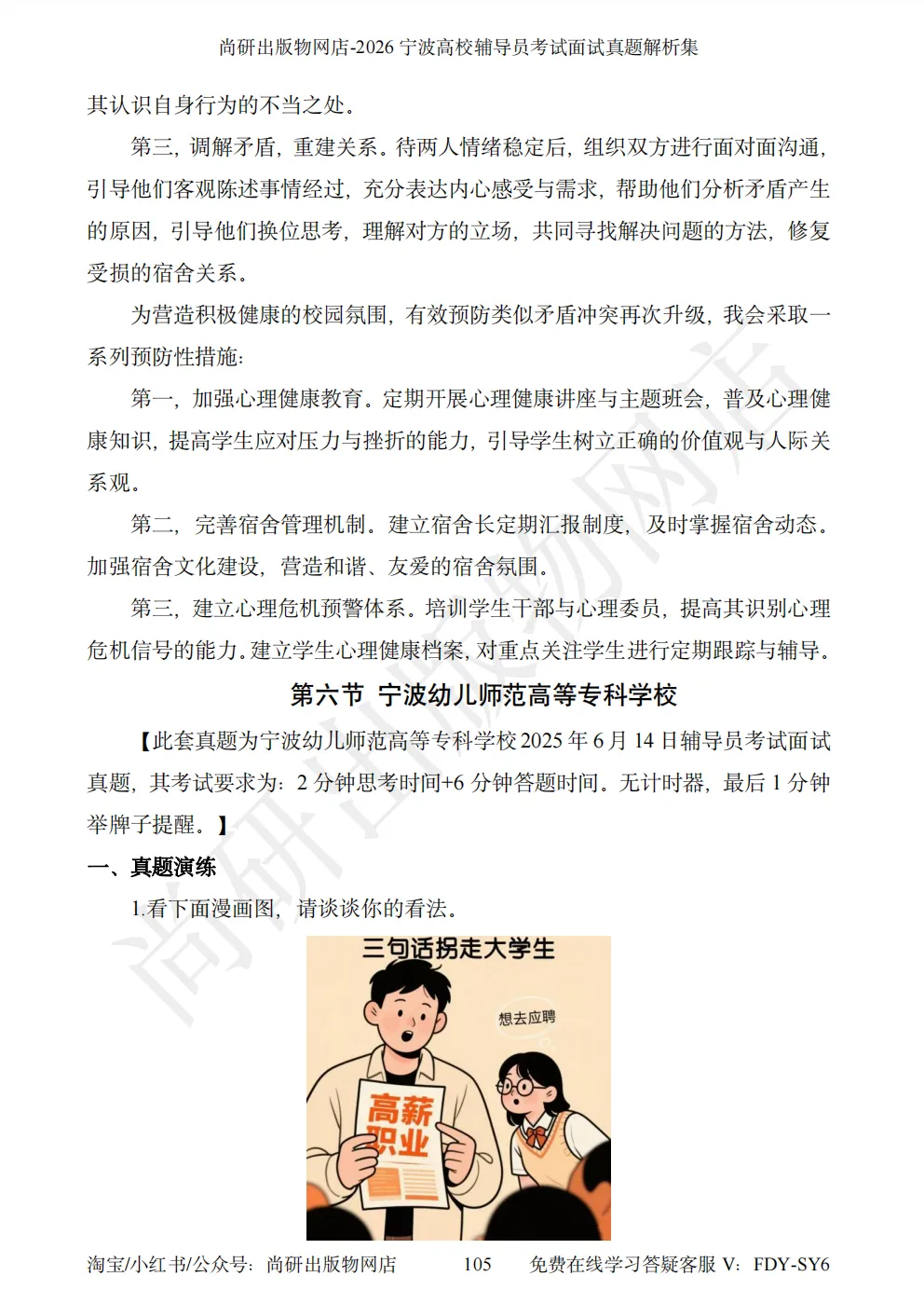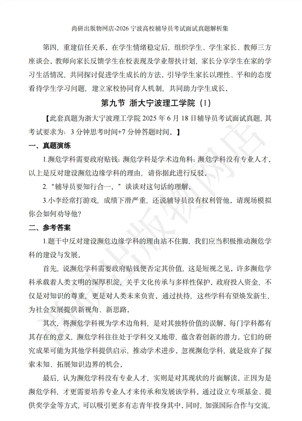 假如你进入了宁波高校辅导员面试环节,得认真学习《宁波高校辅导员面试真题解析集》,我们的答案紧扣得分点,可以助力大家金榜题名!