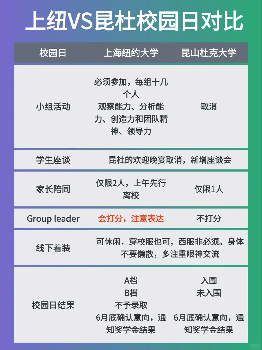 时间:2026年3月中下旬至4月上旬(4场,3月14日、21日、28日、29日,考生任选1场)地点:昆山杜克大学校园(江苏省昆山市杜克大道8号)参与资格:通过昆杜综合评价初审的中国大陆高中毕业生,需提前完成AI面试(未完成视为放弃)必备材料:身份证、纸质校园日邀请函、健康申报表,每位考生限1位家长陪同2. 全天流程安排(参考2025年,核心环节不变)