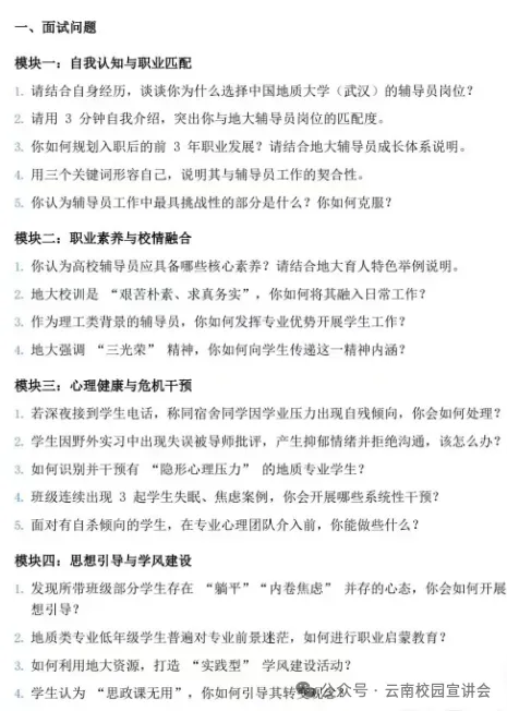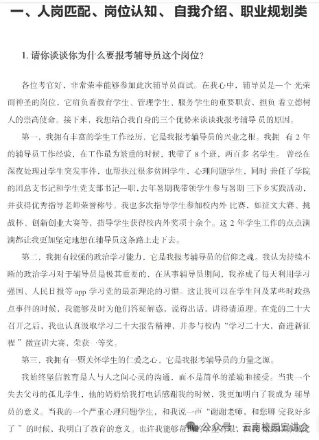- 自我认知类(如 “结合德宏职院特点,谈你做辅导员的优势”)