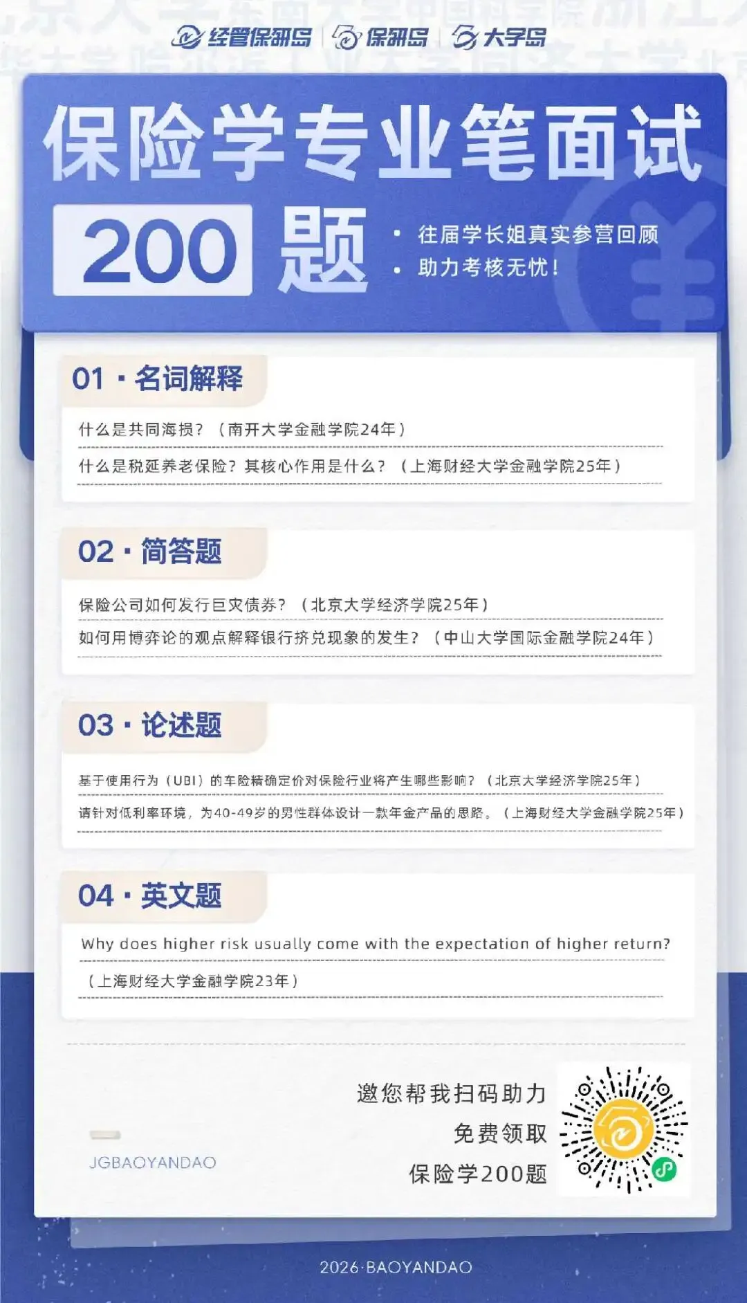 基本来说,保险学专业基本以笔面试的方式来进行考核,内容涵盖保险产品的设计与开发、保险产品的销售与服务、保险理赔的原则与实务等多个方面。不同院校的考核方式与侧重点都有所差异,因此,掌握真题很有必要。