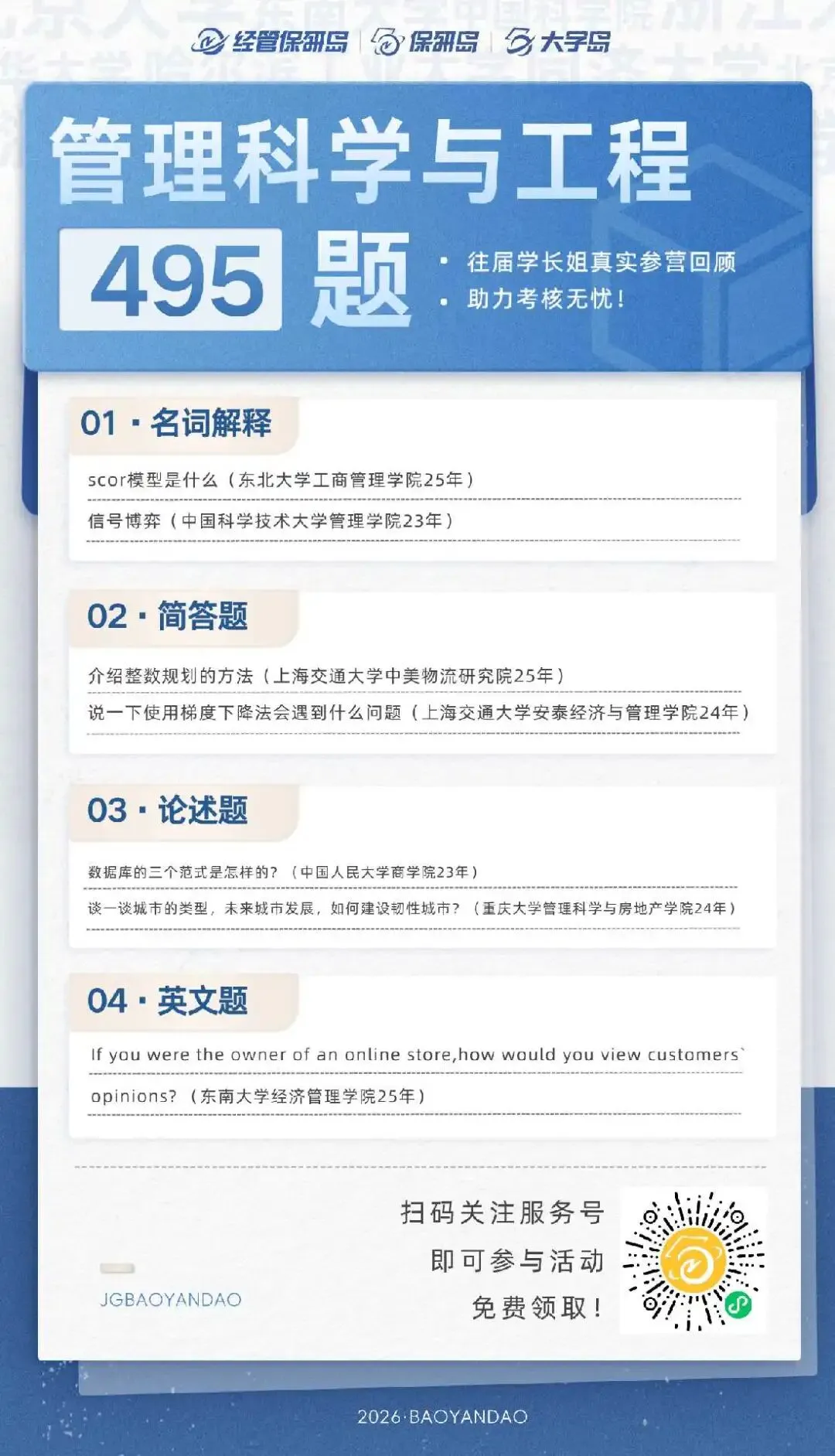 基本来说,管理科学与工程专业基本以笔面试的方式来进行考核,内容涵盖运筹学、统计学、编程、管理学等多个方面。