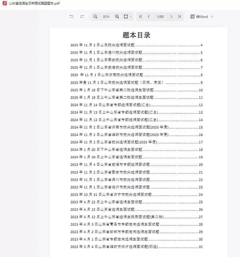 山东省选调生历年面试真题及逐字稿(2010-2025.11月)pdf电子版