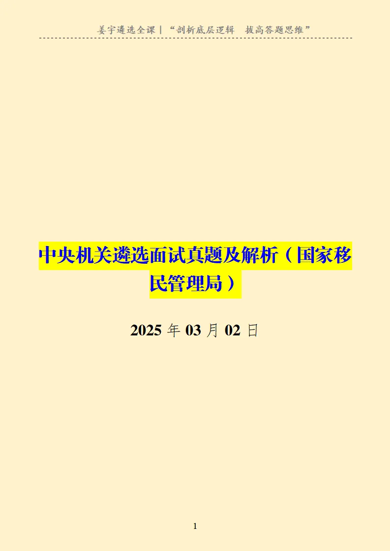 >2025年03月02日|中央机关遴选面试真题及解析(国家移民管理局)