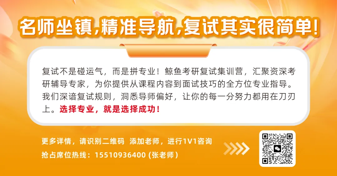 请记住,你的大学四年,绝无虚度。现在,你需要做的,就是找到一把钥匙,打开那座看似平凡的宝库。而鲸鱼考研,愿意成为你身边那个最专业的“开锁人”,不仅帮你打造一份让导师无法拒绝的简历,更通过“四位一体”的系统辅导,助你精准打通复试的最后一公里,实现最终的逆袭上岸!下一篇,我们将为您带来《引言:联系导师,一场心照不宣的“提前批面试”》
