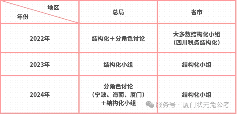 时长40-60分钟,考生自主发言,可阐明、支持、反对或总结观点,考官观察记录。特殊题目可按要求补充材料。