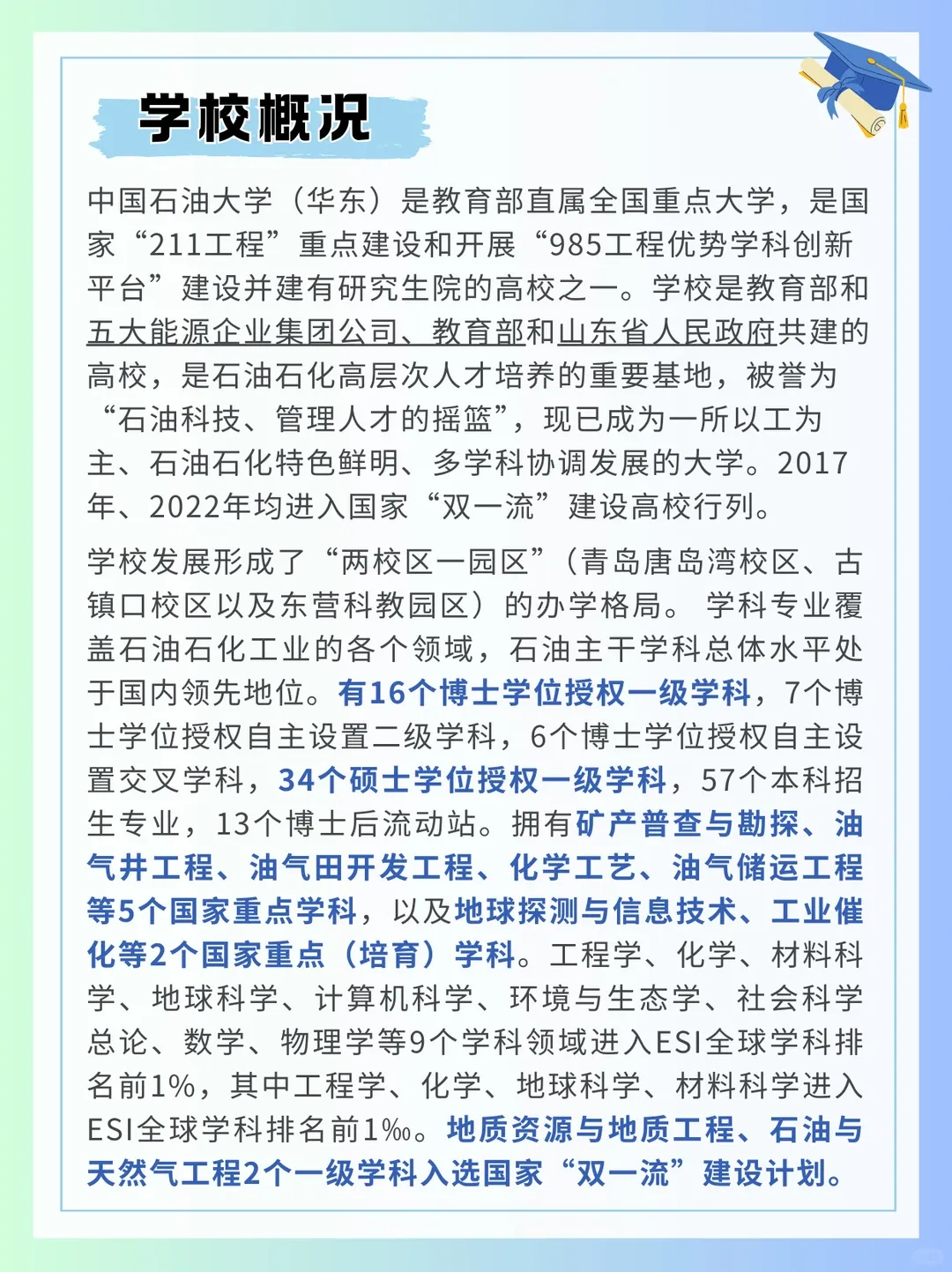 - 贴合院校特色:回答任何问题,尽量结合石大的“能源特色”“双一流学科”“办学理念”,比如提及专业时,可关联石大的王牌专业、科研方向,体现对院校的了解。