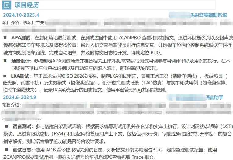 运用 STAR 法则进行阐述,并注重量化成果。例如:主导智能座舱语音测试项目,设计并执行一语音功能测试方案,确保智能座舱的语音交互功能在各种场景下都能稳定、准确地工作。