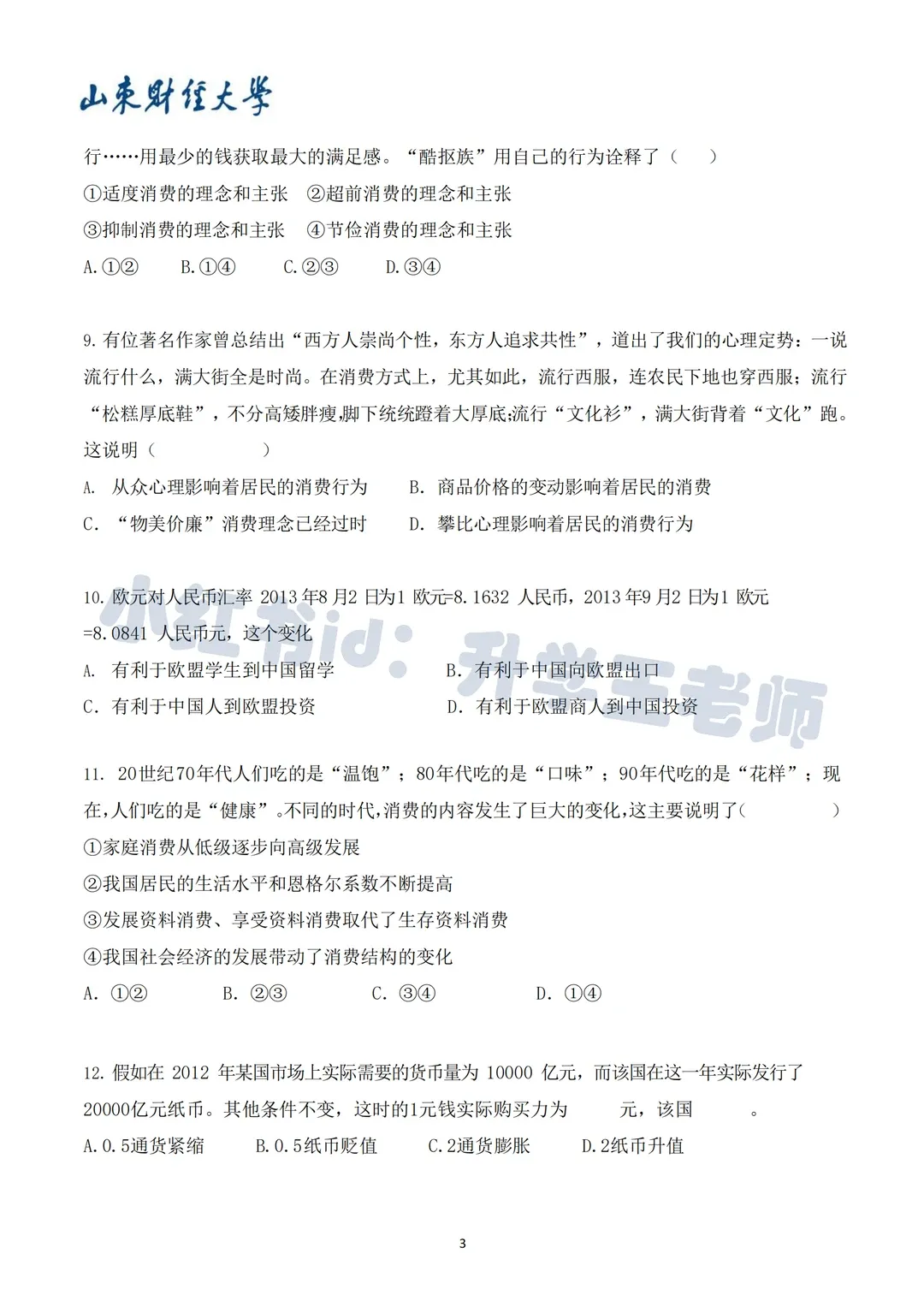 答案解析:选A。贴合山财工商管理、公共管理等优势学科,考察管理的核心理念——现代管理强调“以人为本”,注重人的主观能动性和需求,这也是山财人才培养的核心方向之一,这类题目侧重基础理论记忆,难度较低,易得分。真题4(多选·财经应用能力):以下属于财经基本概念相关的考点有( )