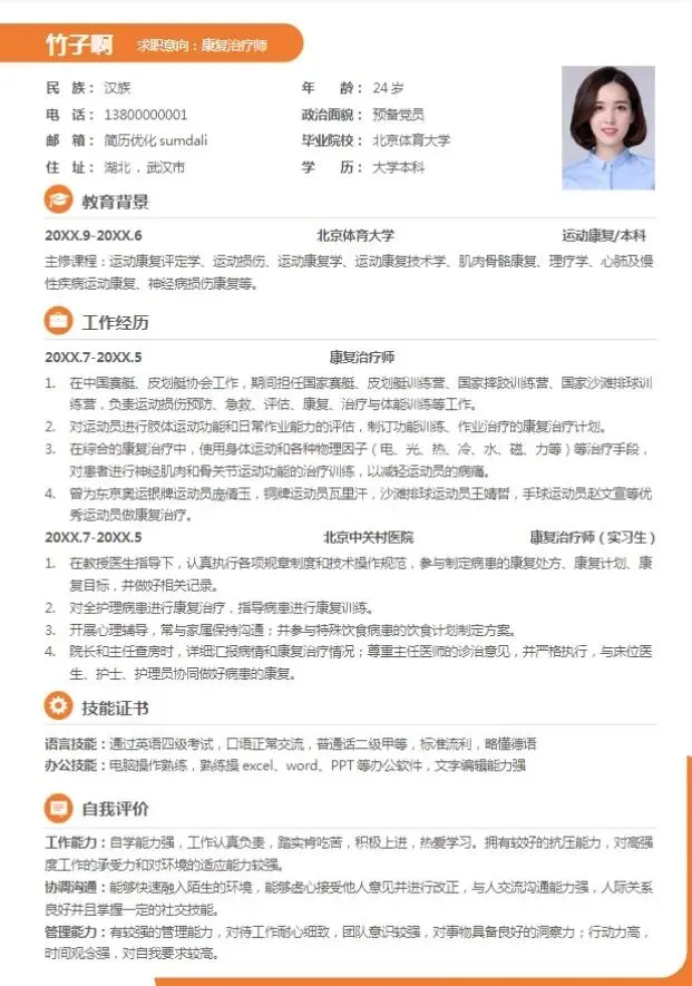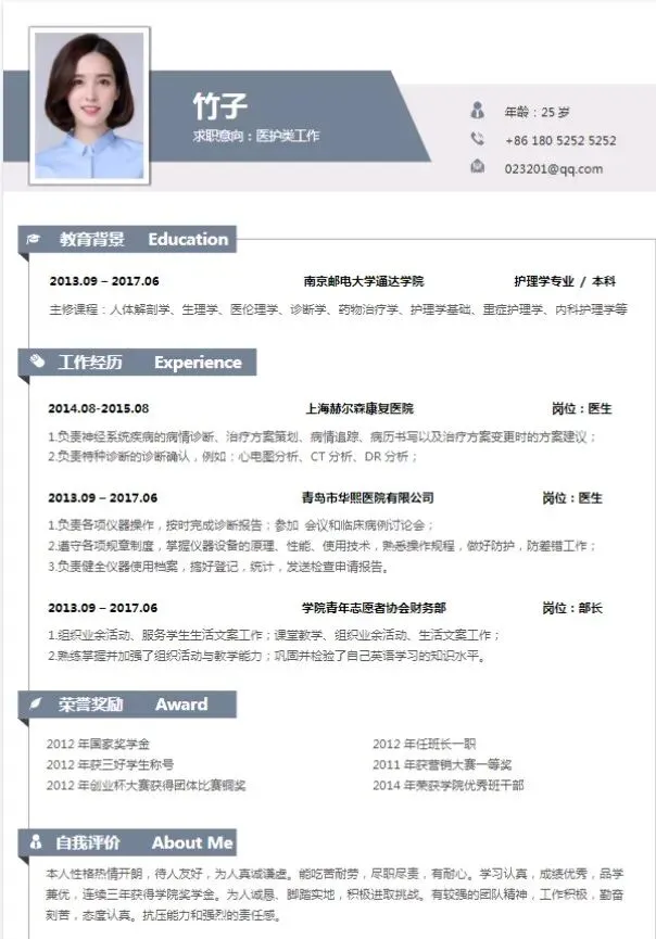 本期分享的内容是:医生护士简历模板