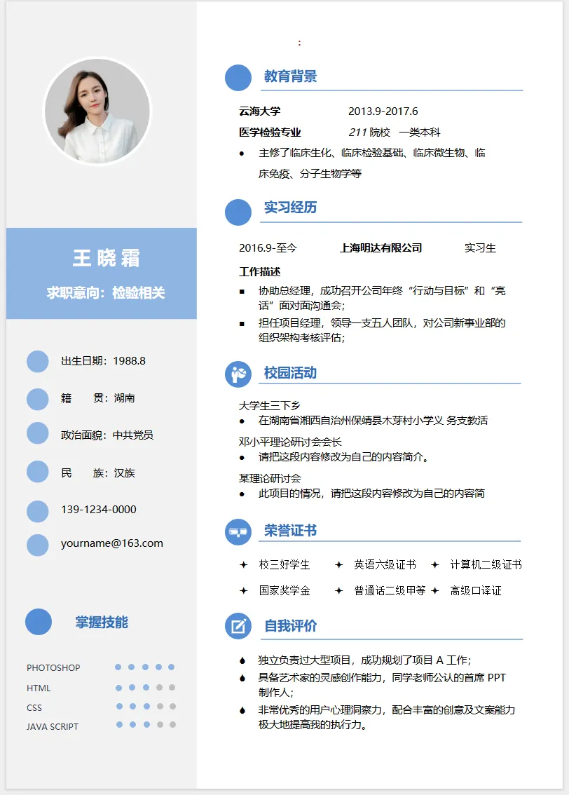 医生护士简历模板