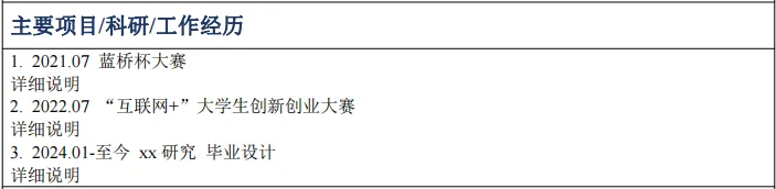 注意:如果在本科期间参与过科研或者实习(尤其是与意向导师研究方向相近的经历),那么一定要写上,并把科研经历一栏放在最前面!