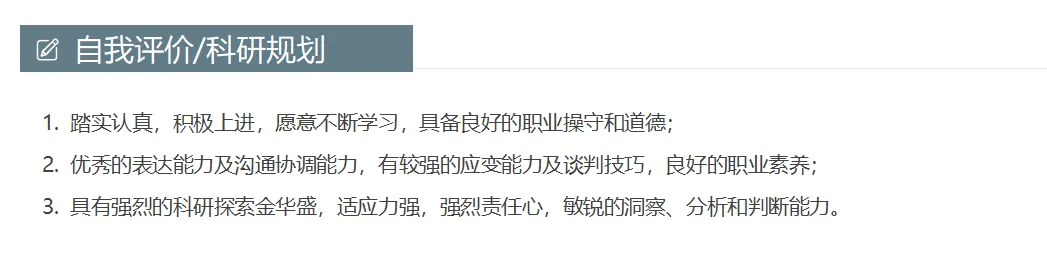 这部分有3行左右即可,切忌冗长,写太多了反而会适得其反!