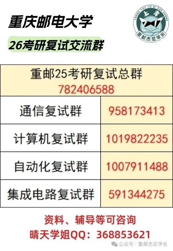 重邮27考研交流QQ群:1057893896,已经给大家建好啦,群内有重邮历年上岸情况汇总,还会有上岸师兄师姐日常考研答疑,想超人一步的宝子可以进群获取哟~