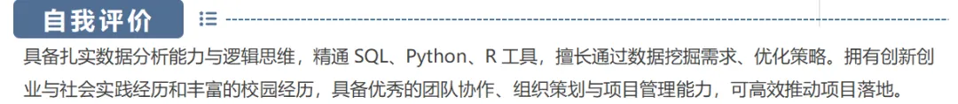 结合各板块经历提炼核心专业能力与通用软能力,贴合求职意向突出适配优势;结合数理专业特色个性化表述,语言简洁凝练、真实客观,避免空话套话。