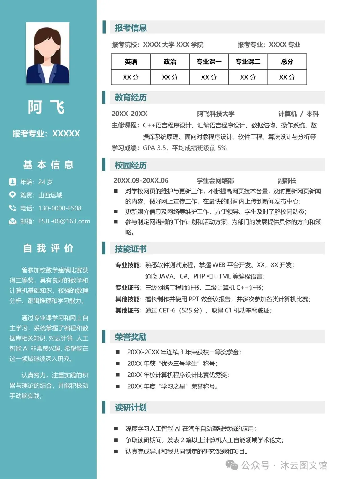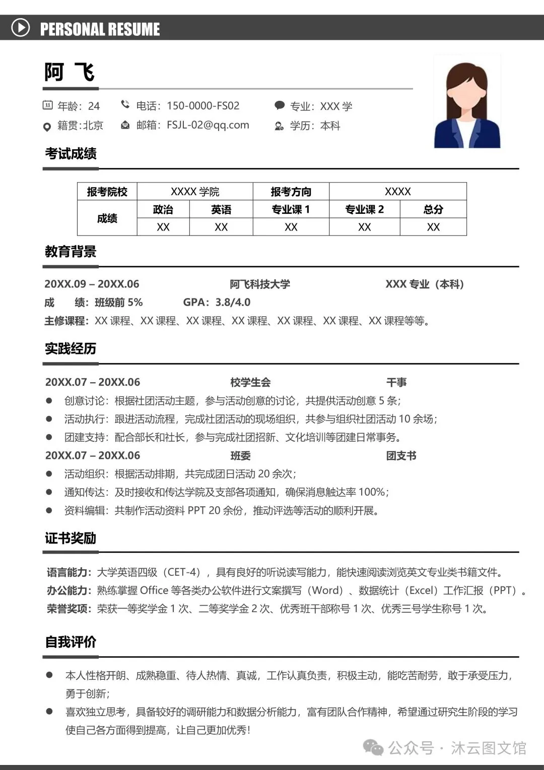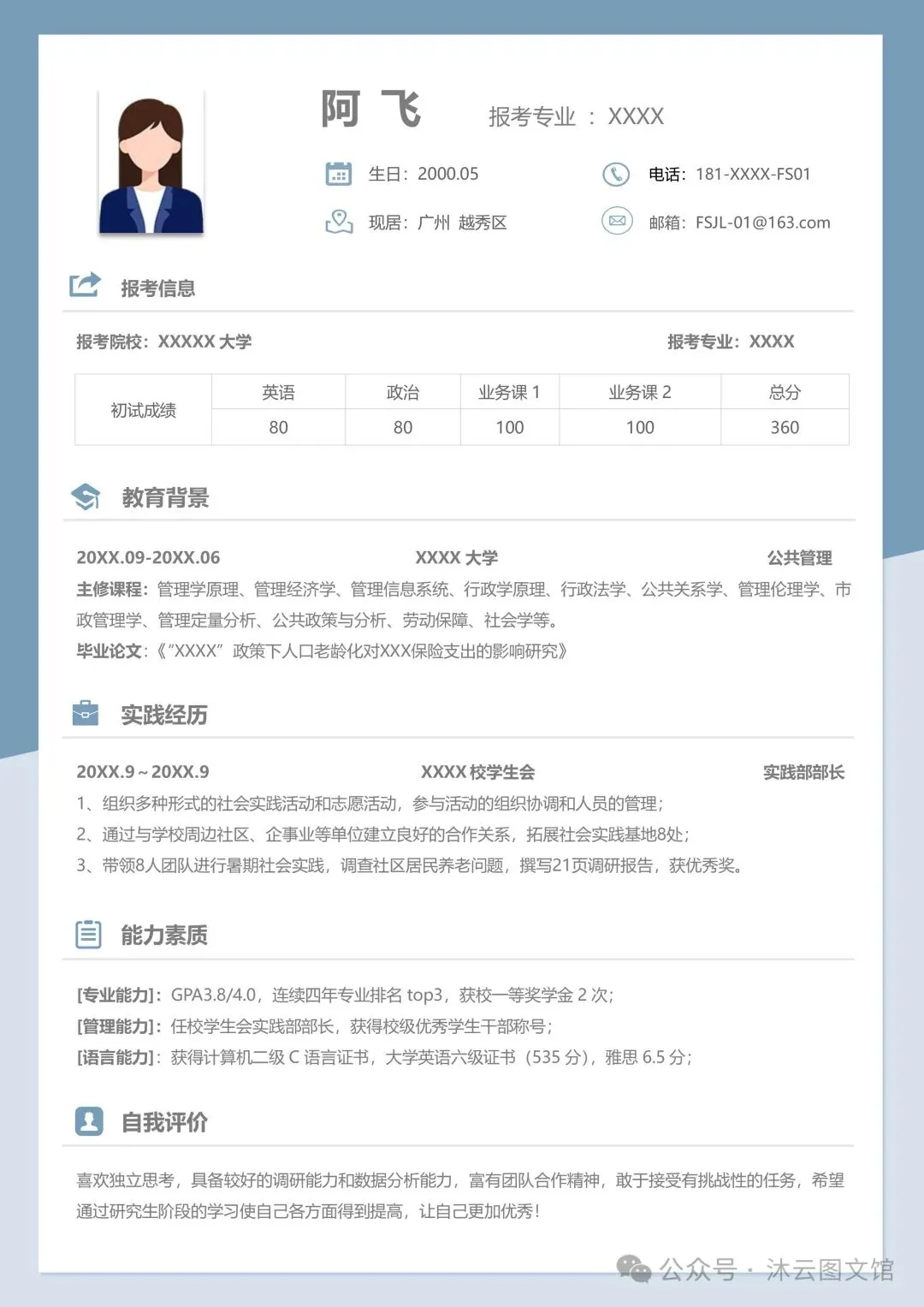 🌟📚 超简约清新单页研究生面试复试必备简历!🐎📖
